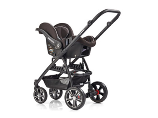 Mit dem passenden Grundadapter kannst Du ganz einfach eine Babyschale auf dem Gestell festklicken. Praktisch für kurze Einkaufsfahrten oder Besuche beim Kinderarzt!