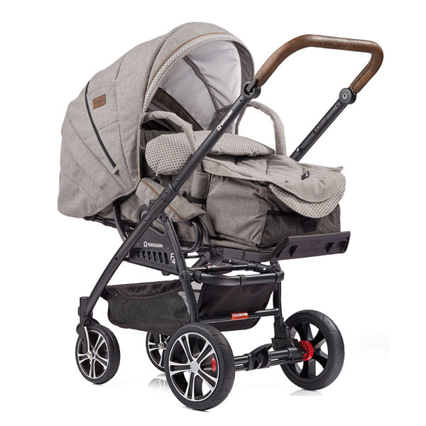 Der Kombi-Kinderwagen F4 Air Plus von GESSLEIN überzeugt als echter Allrounder. In Kombination mit der Tragetasche und dem Spielbügel aus Leder bietet Euren Kindern vom Säuglings- bis ins Kleinkindalter hohen Komfort auf jeder Spazierfahrt.