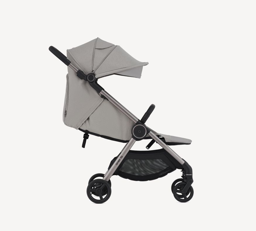 Belüftung 360°. Damit Dein Kind bequem und kühl bleibt, verfügt der IQ über ein ausgeklügeltes Atmungssystem, das an den richtigen Stellen für Belüftung sorgt – vom Verdeck des Kinderbettes über die Fußstütze bis zum Verdeck der Sitzeinheit. Auch die Rückenlehne hat eine Netzbelüftung.