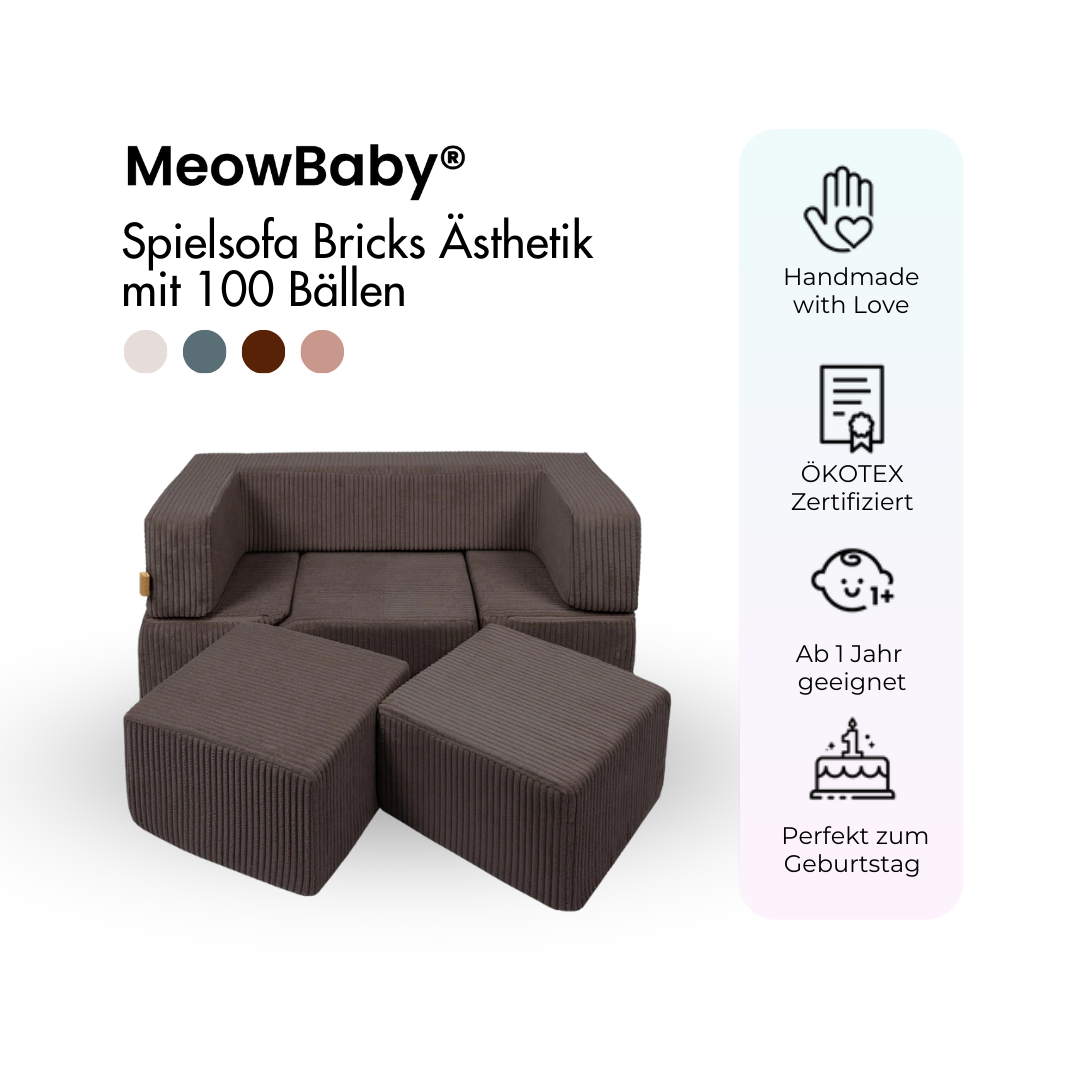 MeowBaby Spielsofa Bricks Ästhetik braun, 100 Bälle - eigene Farbauswahl