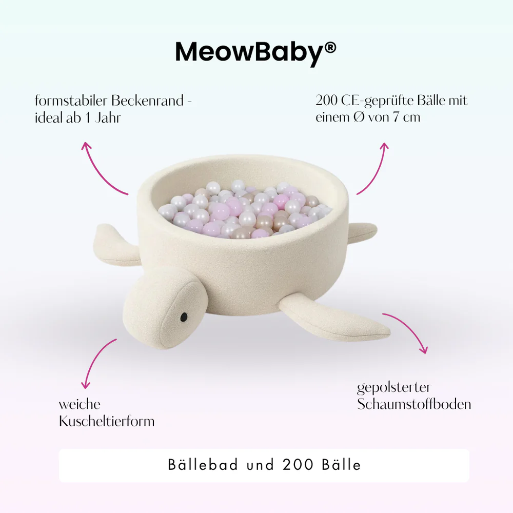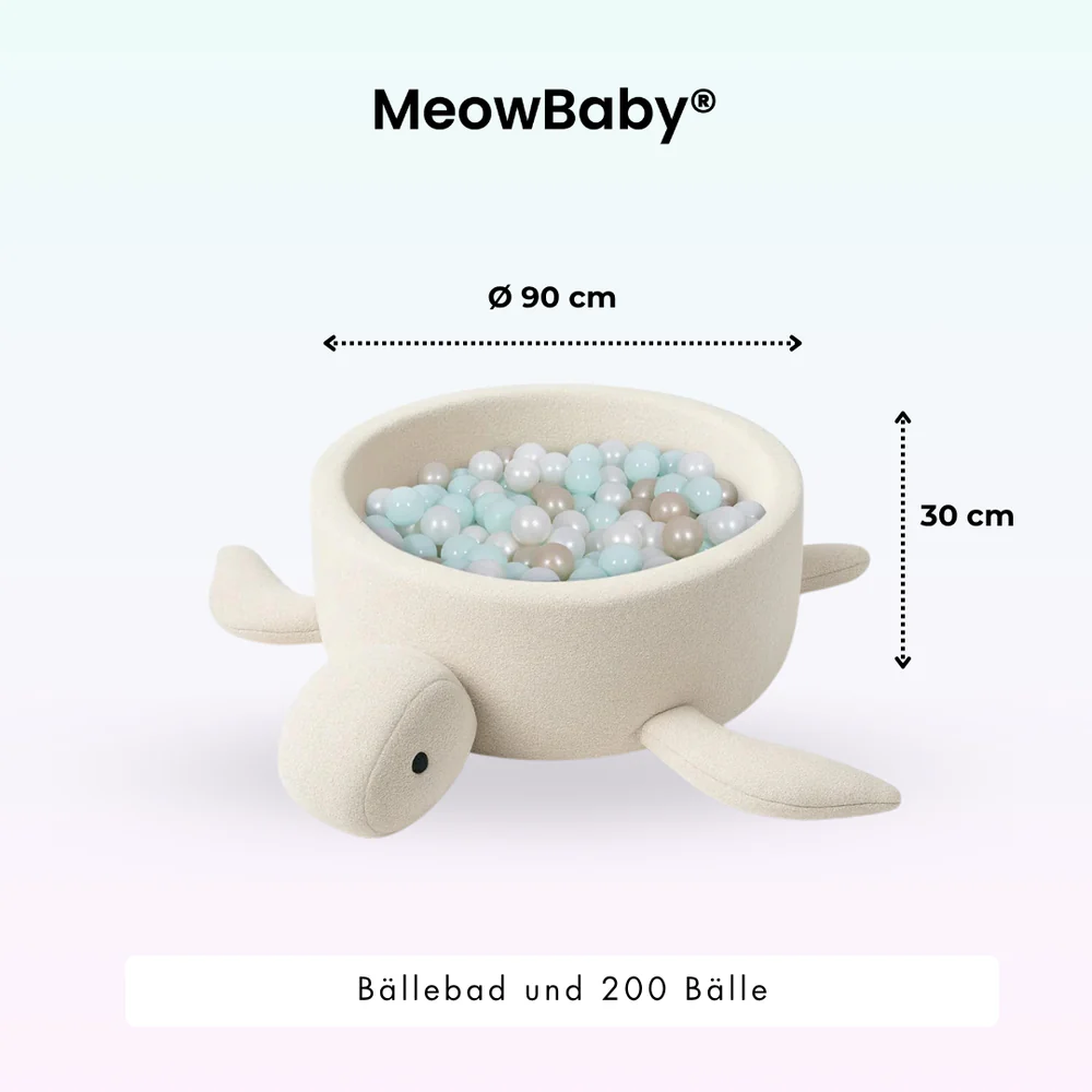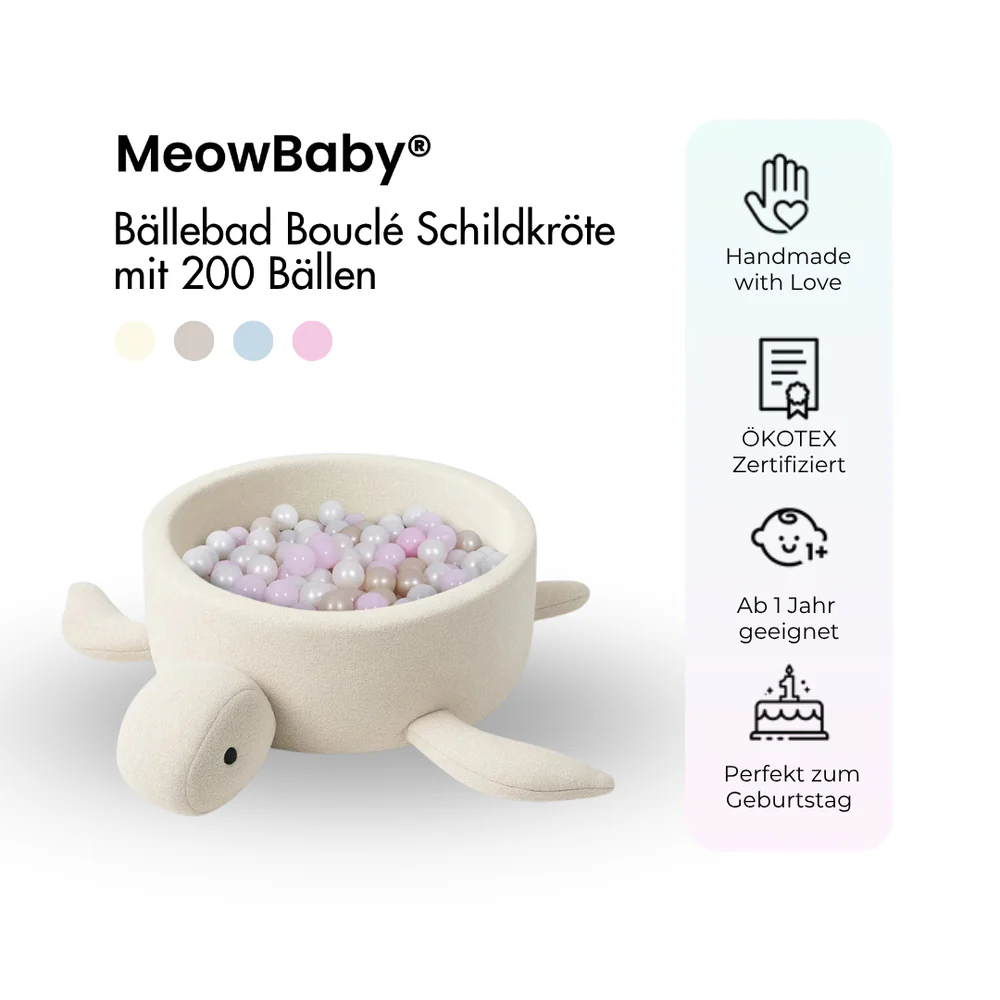 MeowBaby Bällebad Schildkröte Shelly Bouclé creme/weiß, 200 Bälle - eigene Farbauswahl