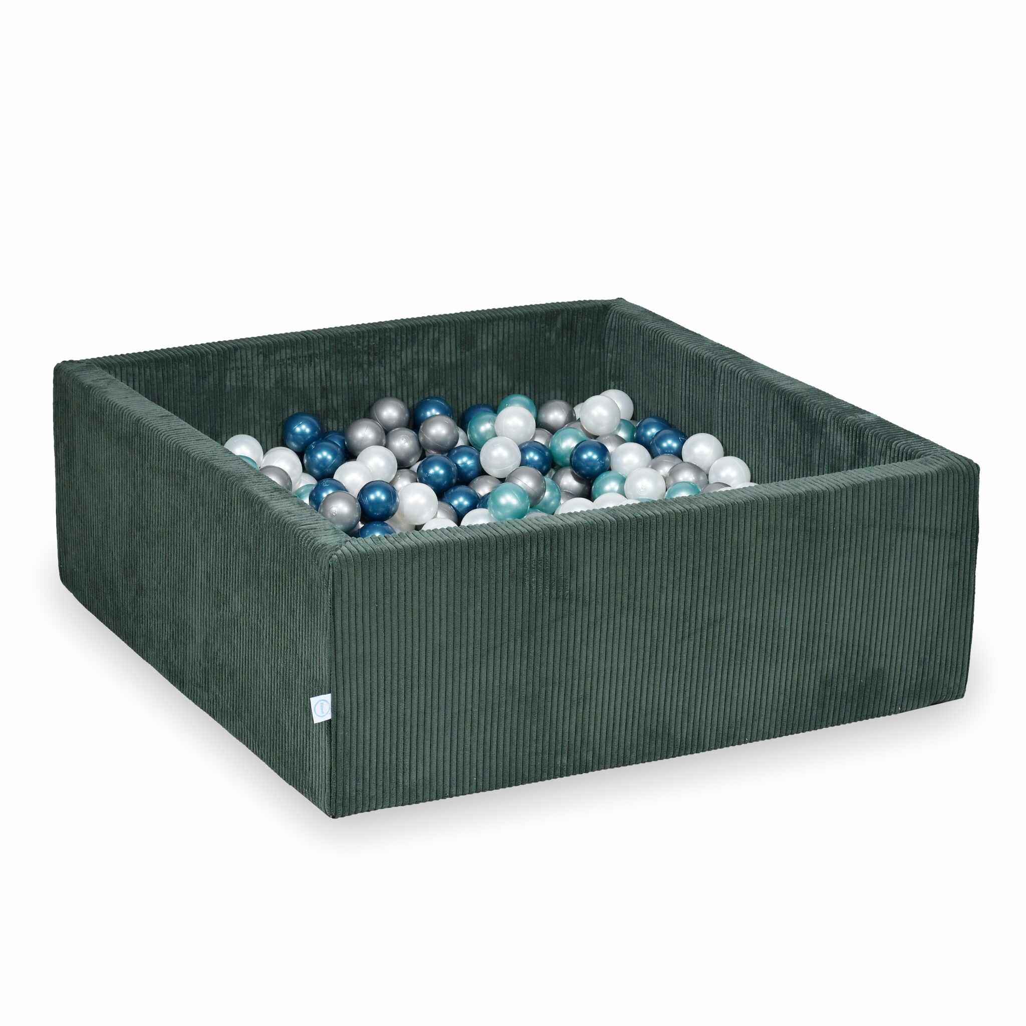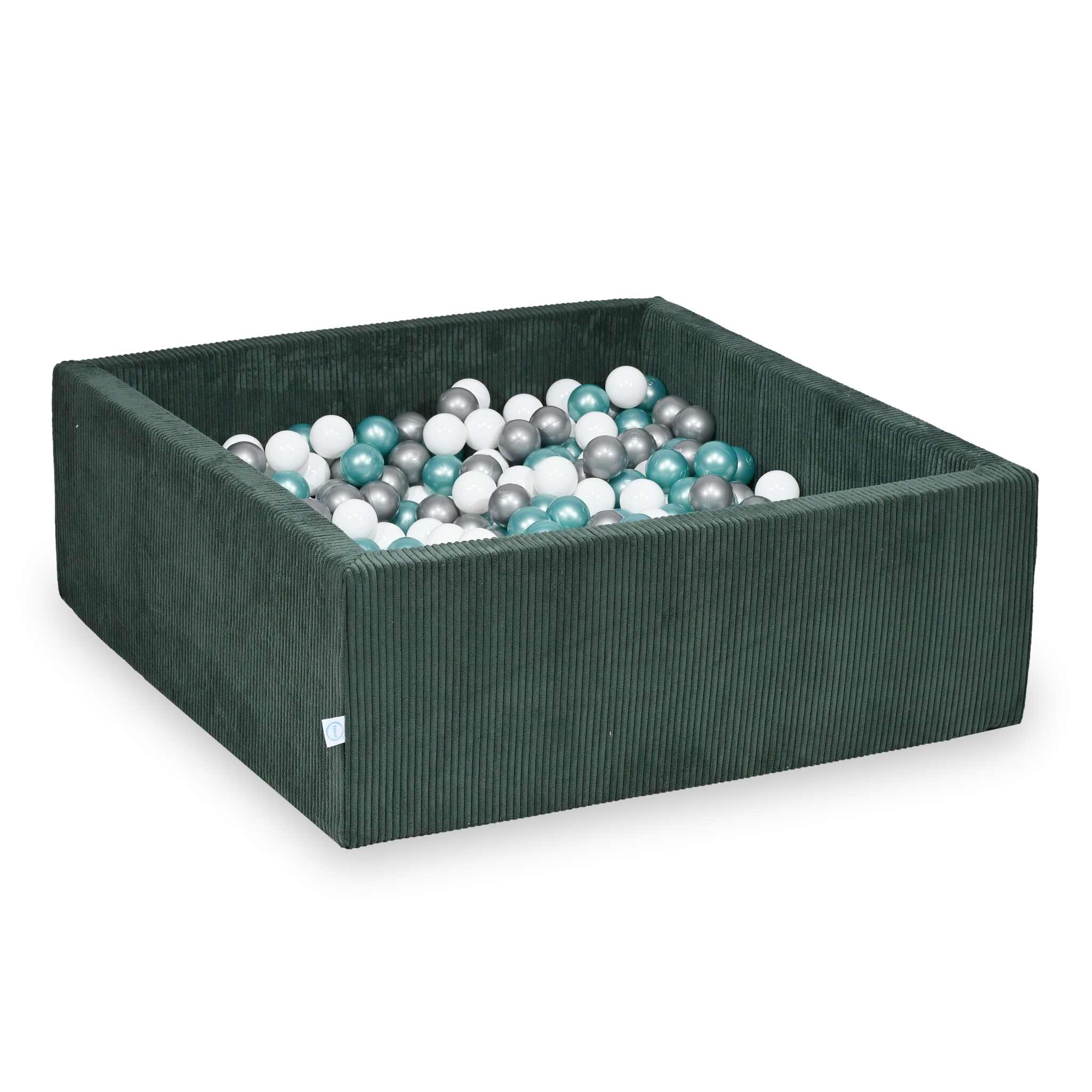 MiMii Bällebad Cord dark cyan 110x110x40cm beige mit 600 Bällen zum selber Gestalten nach Wunsch