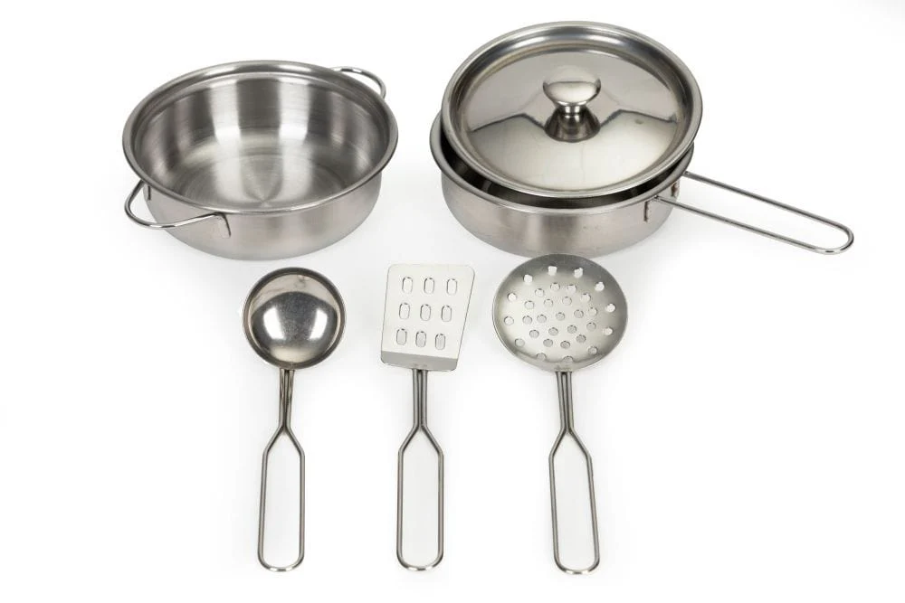 Im Lieferumfang enthalten sind fünf Metall-Küchenutensilien: