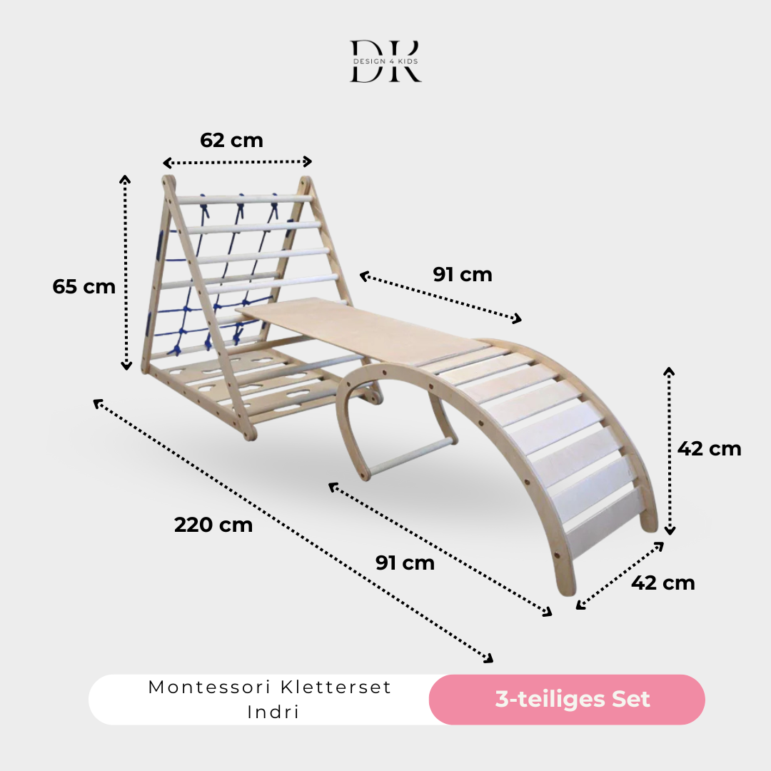 Design4Kids Kletterset Indri - dreiseitiges Kletterdreieck mit Nylonseil, Rutsche und Wippe