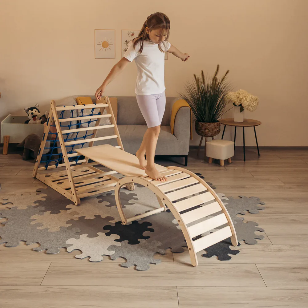 BusyKids Großes Set - Pikler Dreieck, 2 Rutschen & Balancewippe - beschichtungsfrei