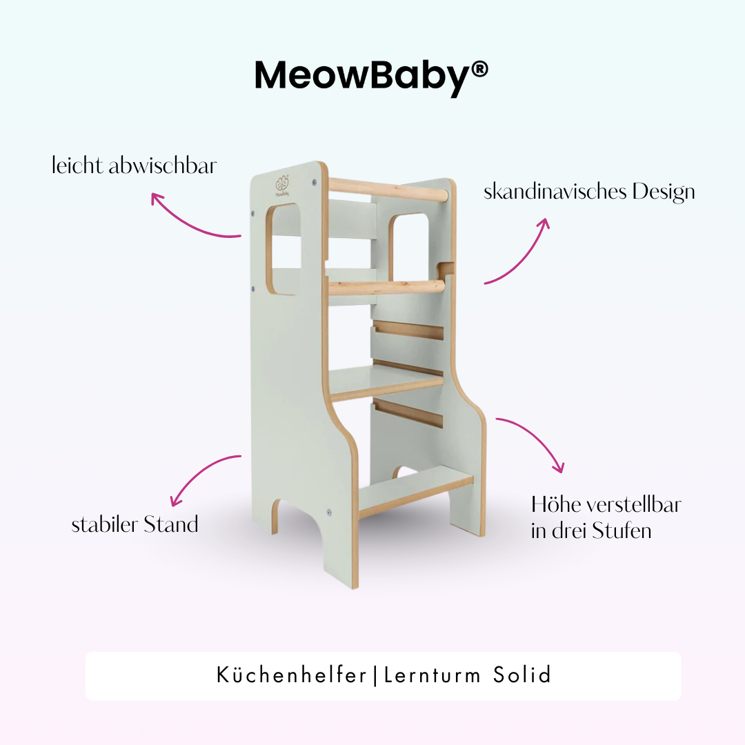 MeowBaby® Montessori Küchenhelfer / Lernturm Solid – Lernspaß und Selbstständigkeit in der Küche
