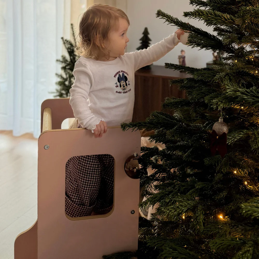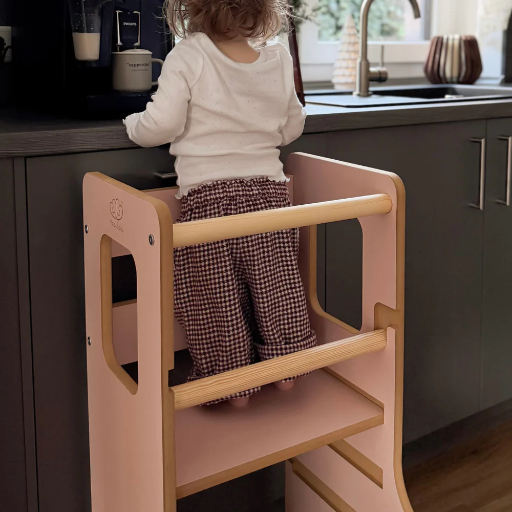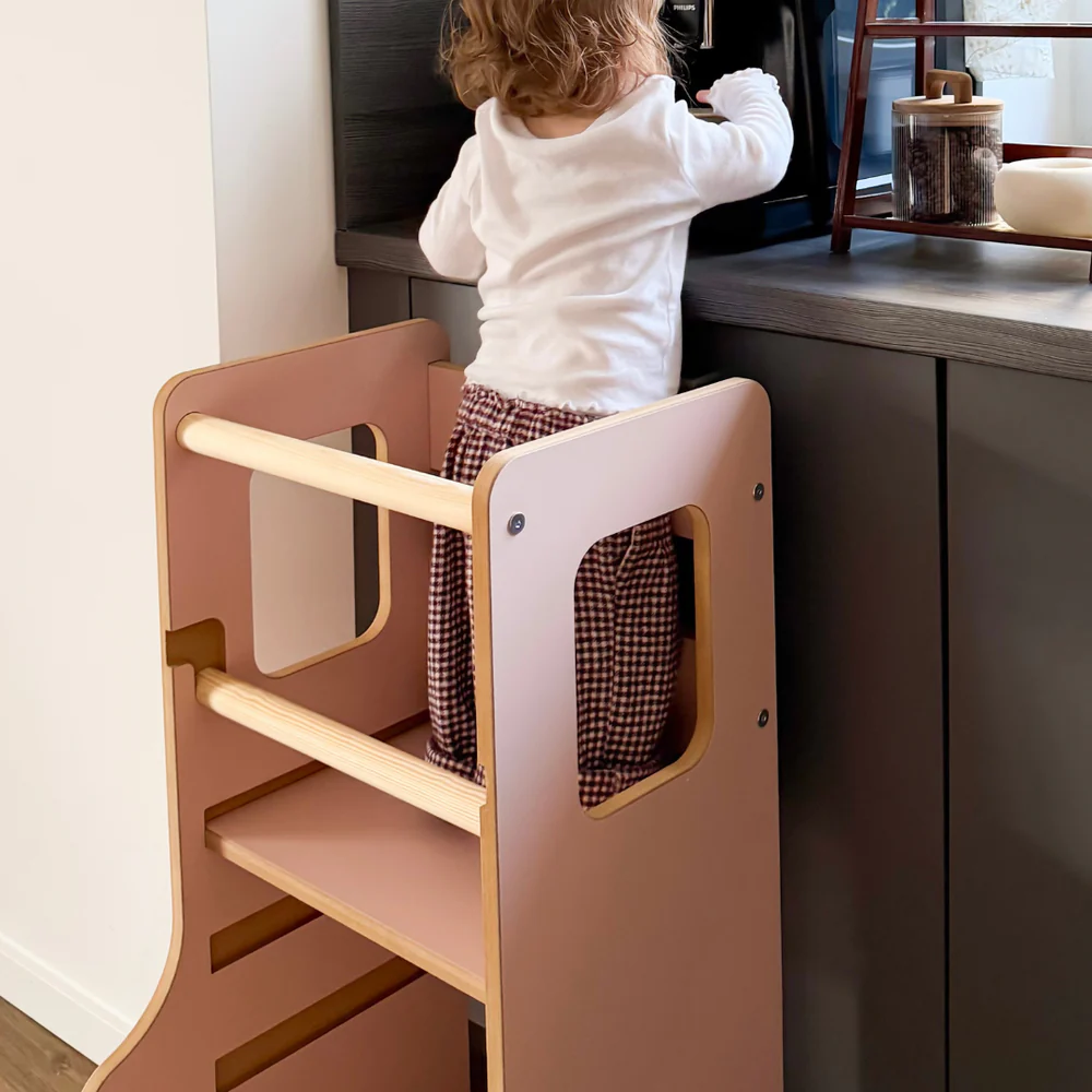 MeowBaby Montessori Küchenhelfer/Lernturm Solid - hellrosa