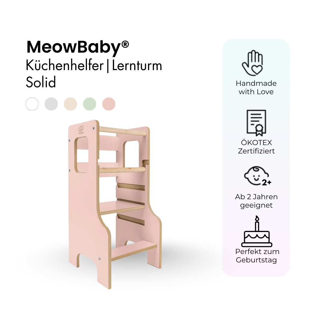 MeowBaby® Montessori Küchenhelfer / Lernturm Solid – Lernspaß und Selbstständigkeit in der Küche