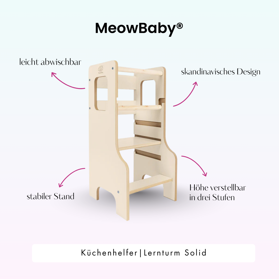 MeowBaby® Montessori Küchenhelfer / Lernturm Solid – Lernspaß und Selbstständigkeit in der Küche