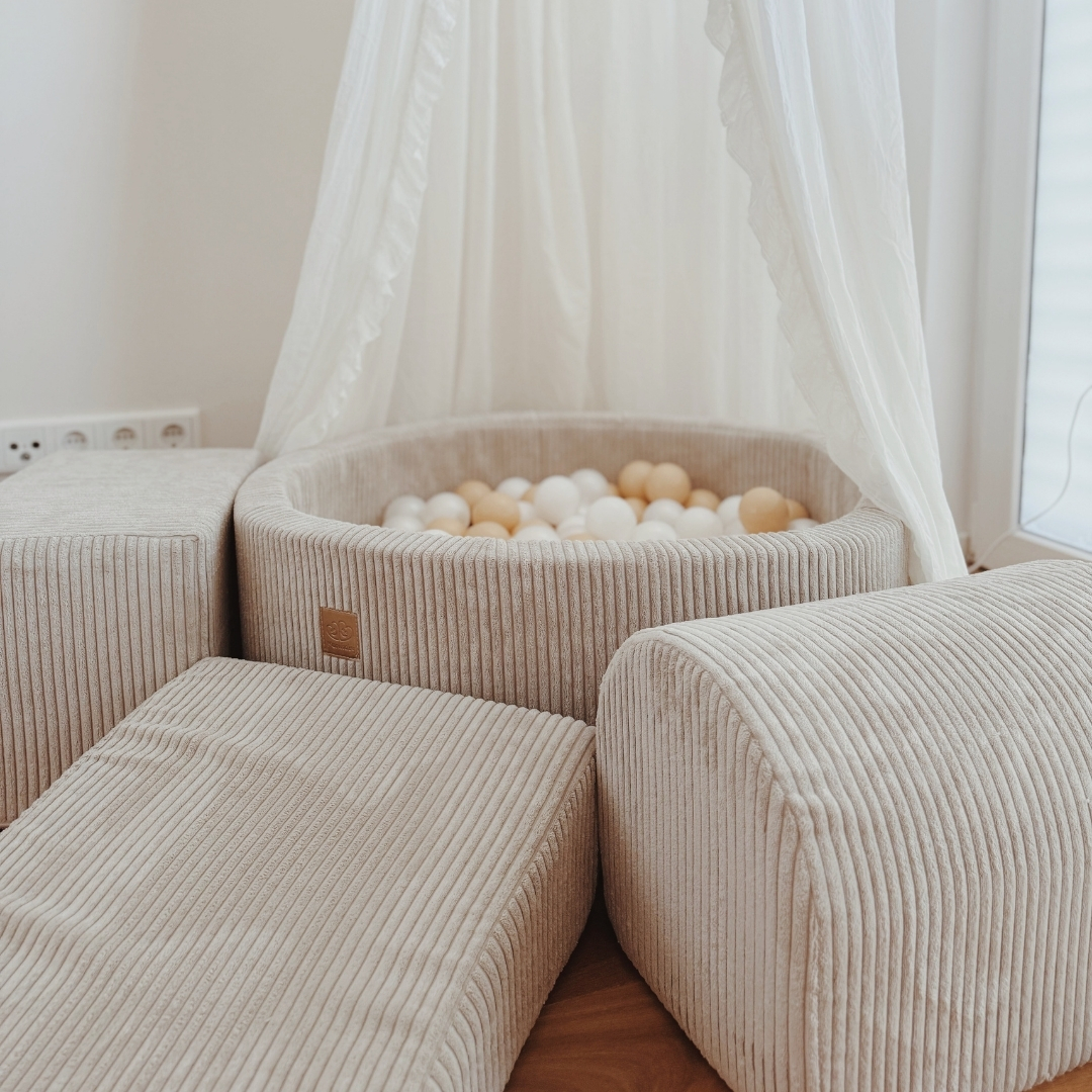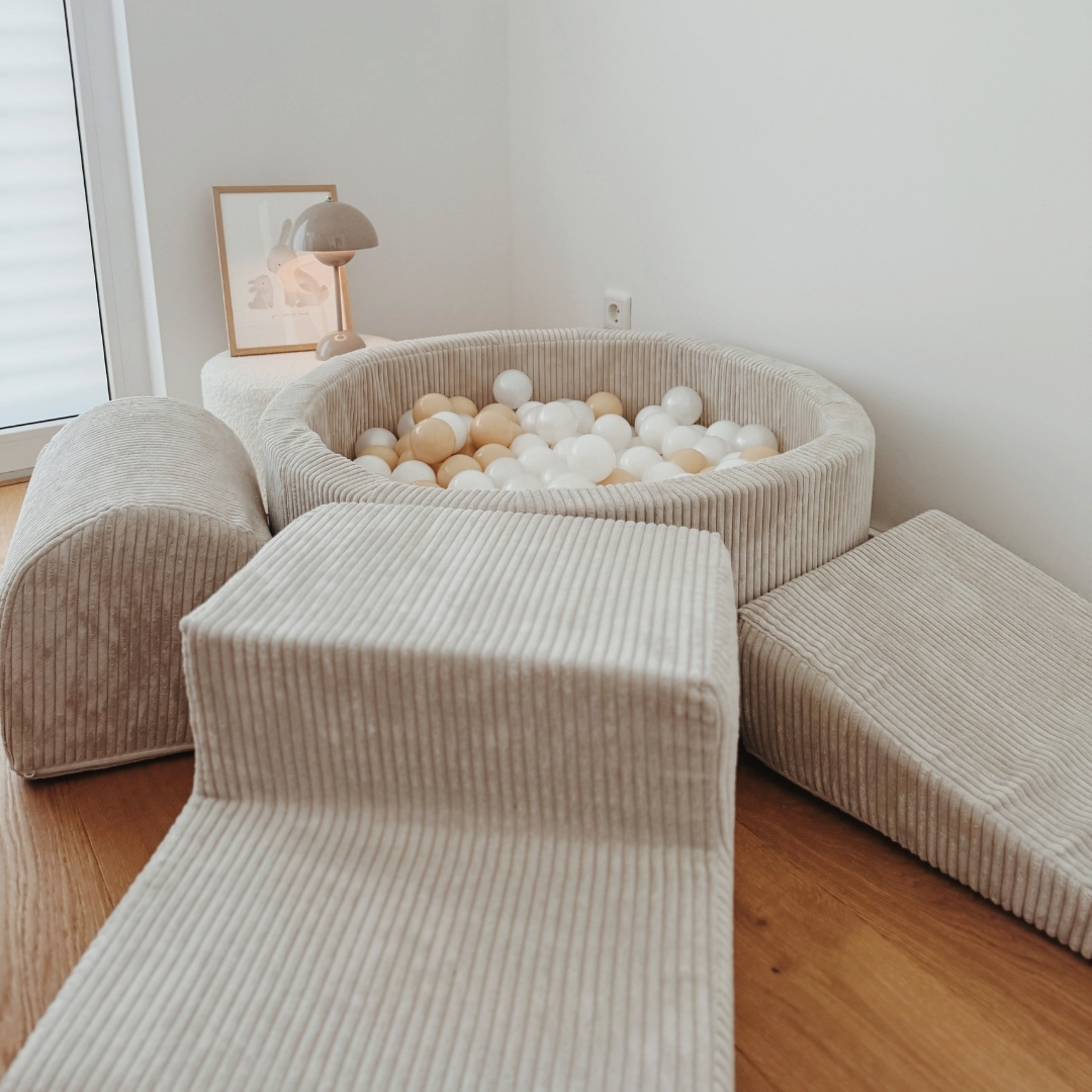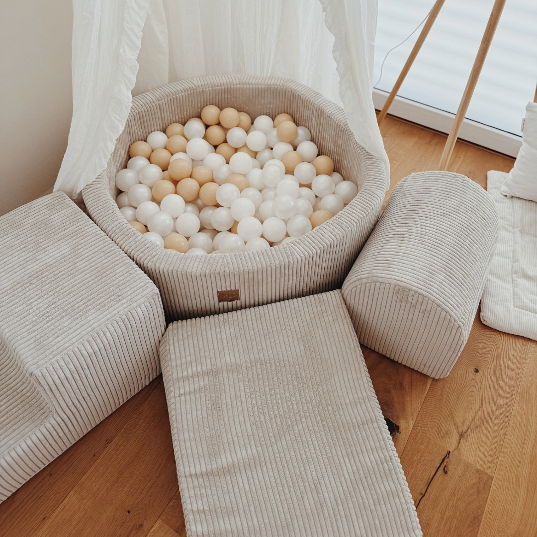 MiMii Schaumspielset Cord ivory beige mit Bällebad und 200 Bälle zum selber Gestalten