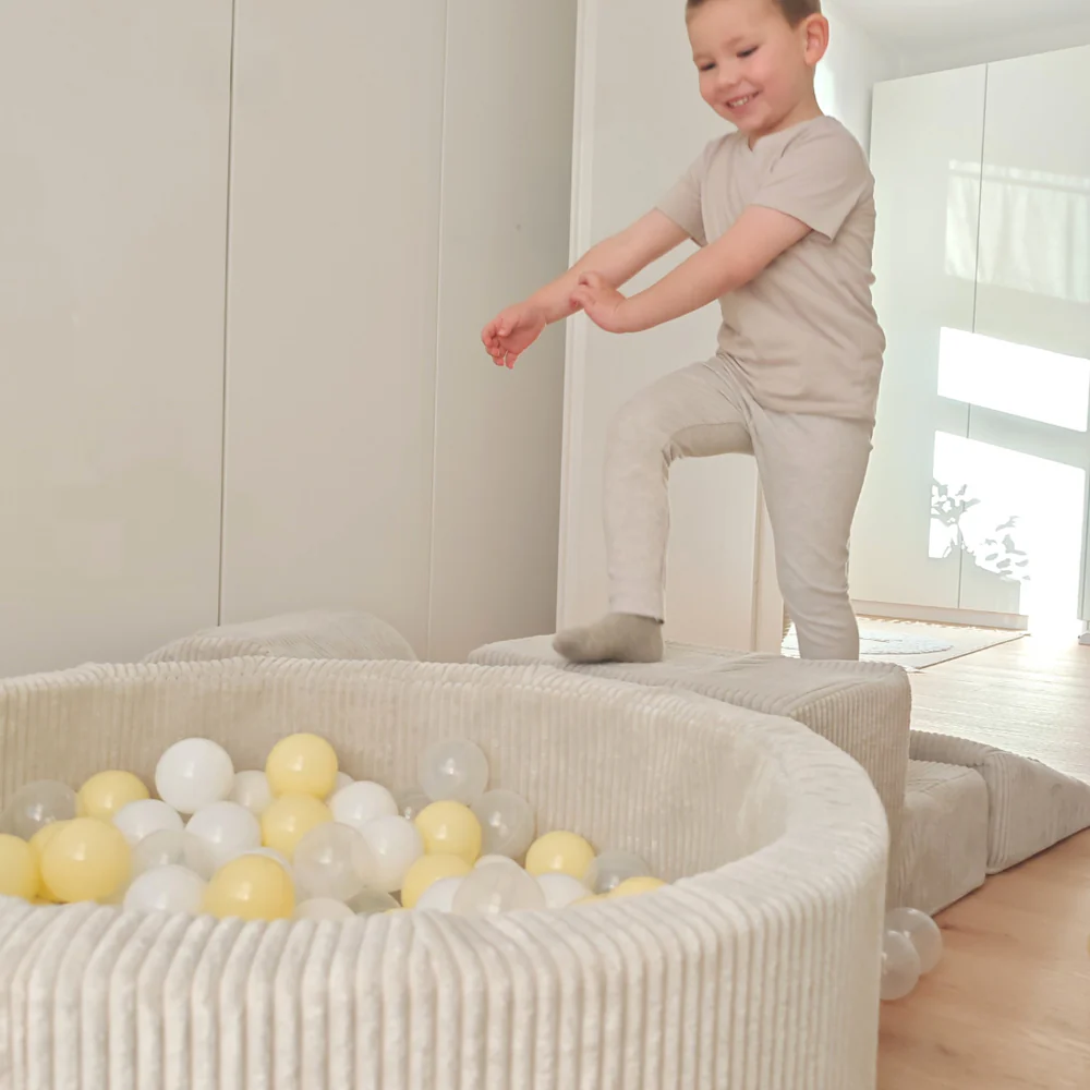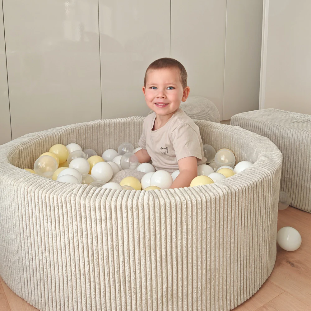 MiMii Schaumspielset Cord ivory beige mit Bällebad und 200 Bälle zum selber Gestalten