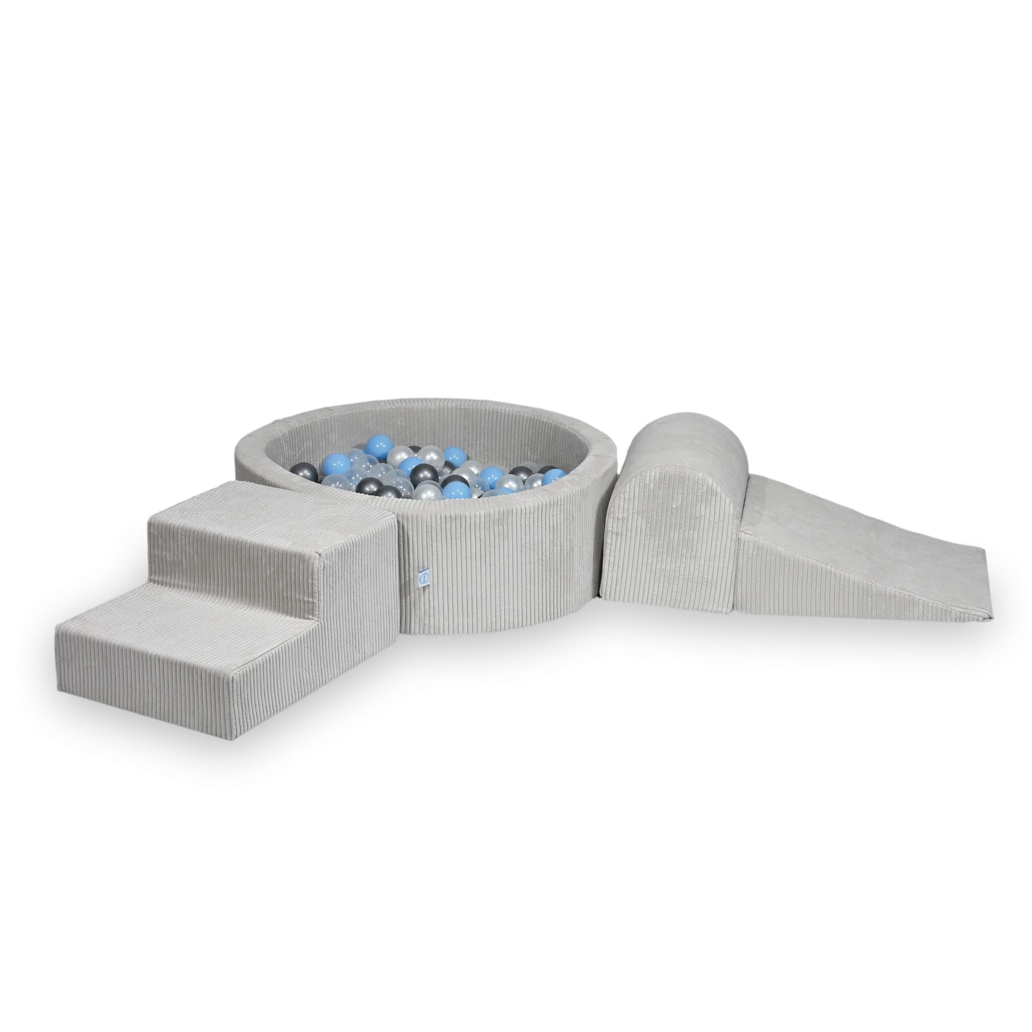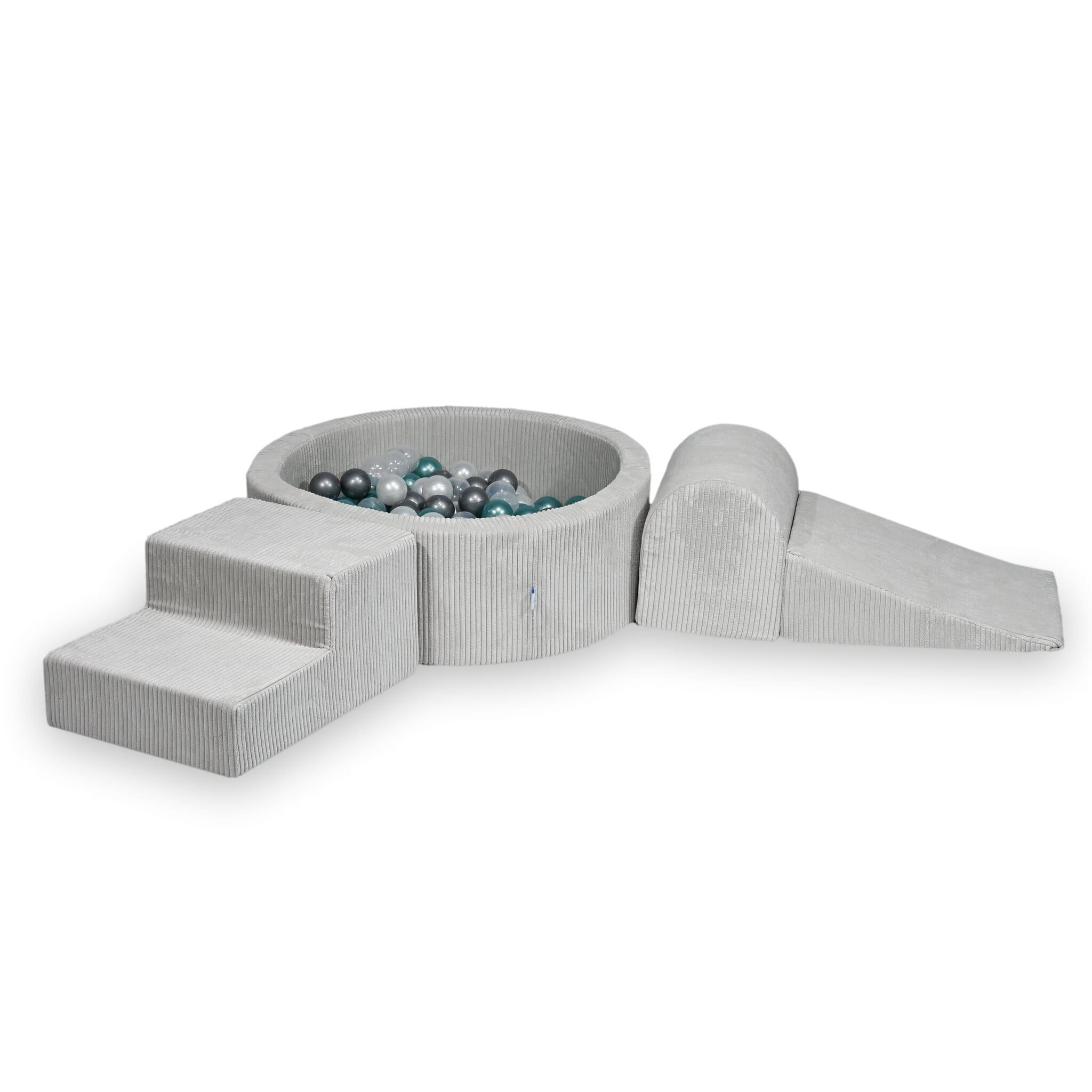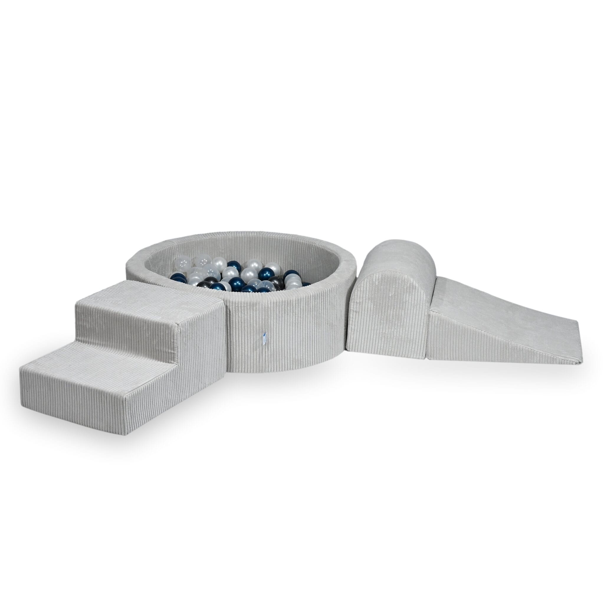 MiMii Schaumspielset Cord ash grey mit Bällebad und 200 Bälle zum selber Gestalten nach Wunsch