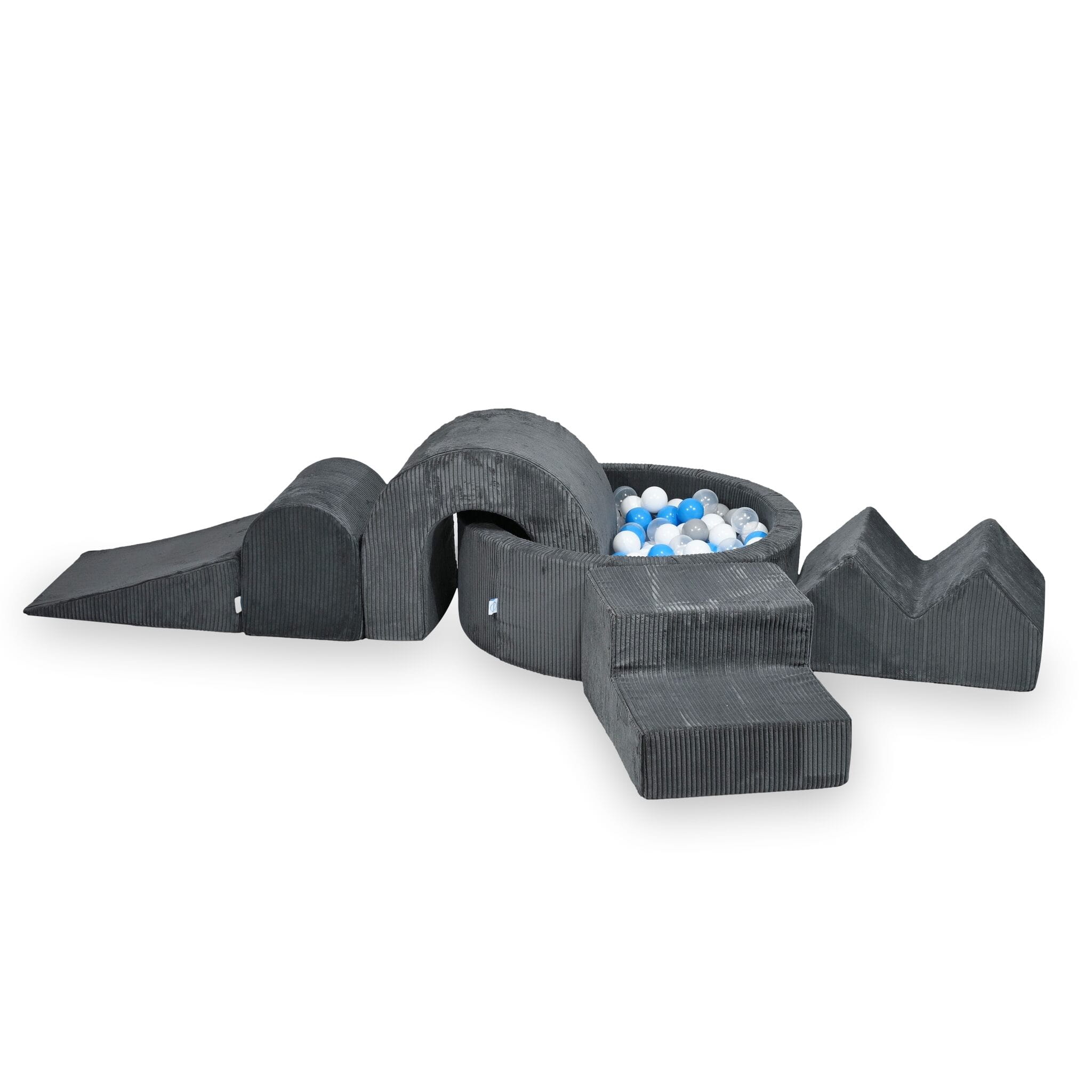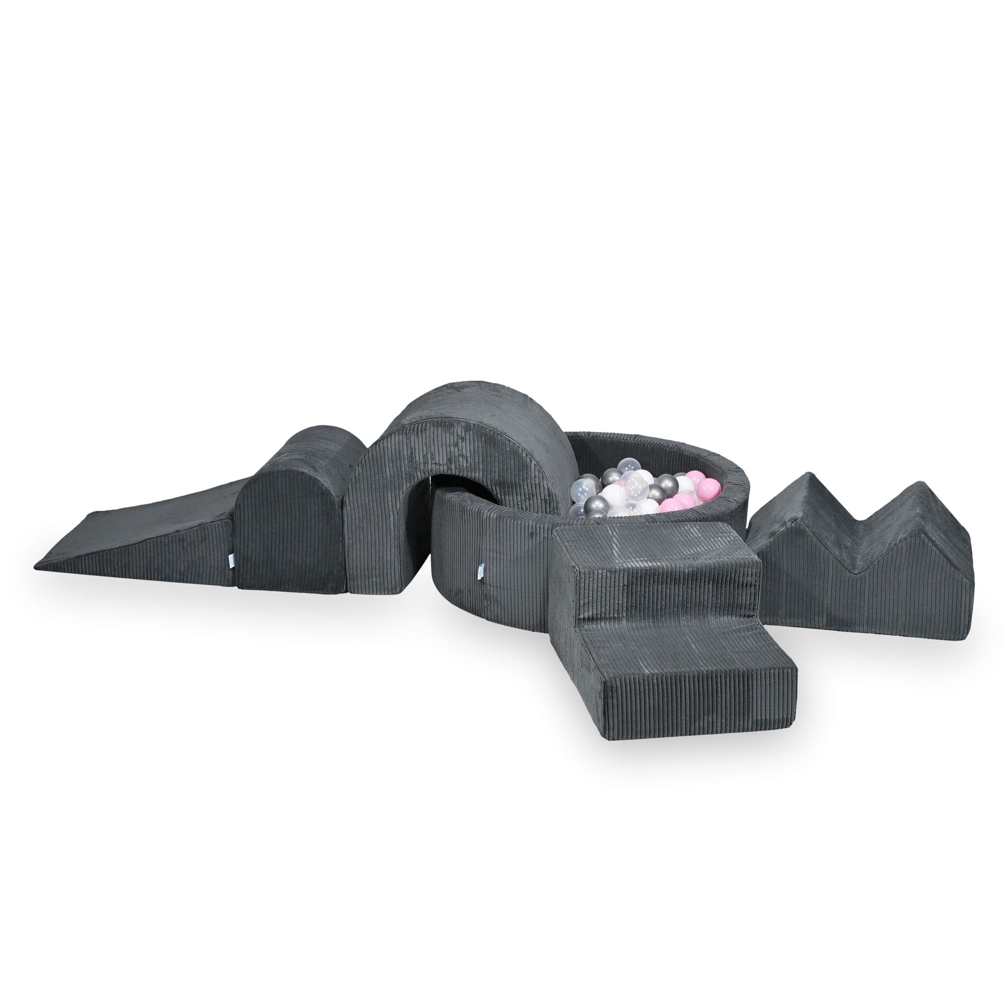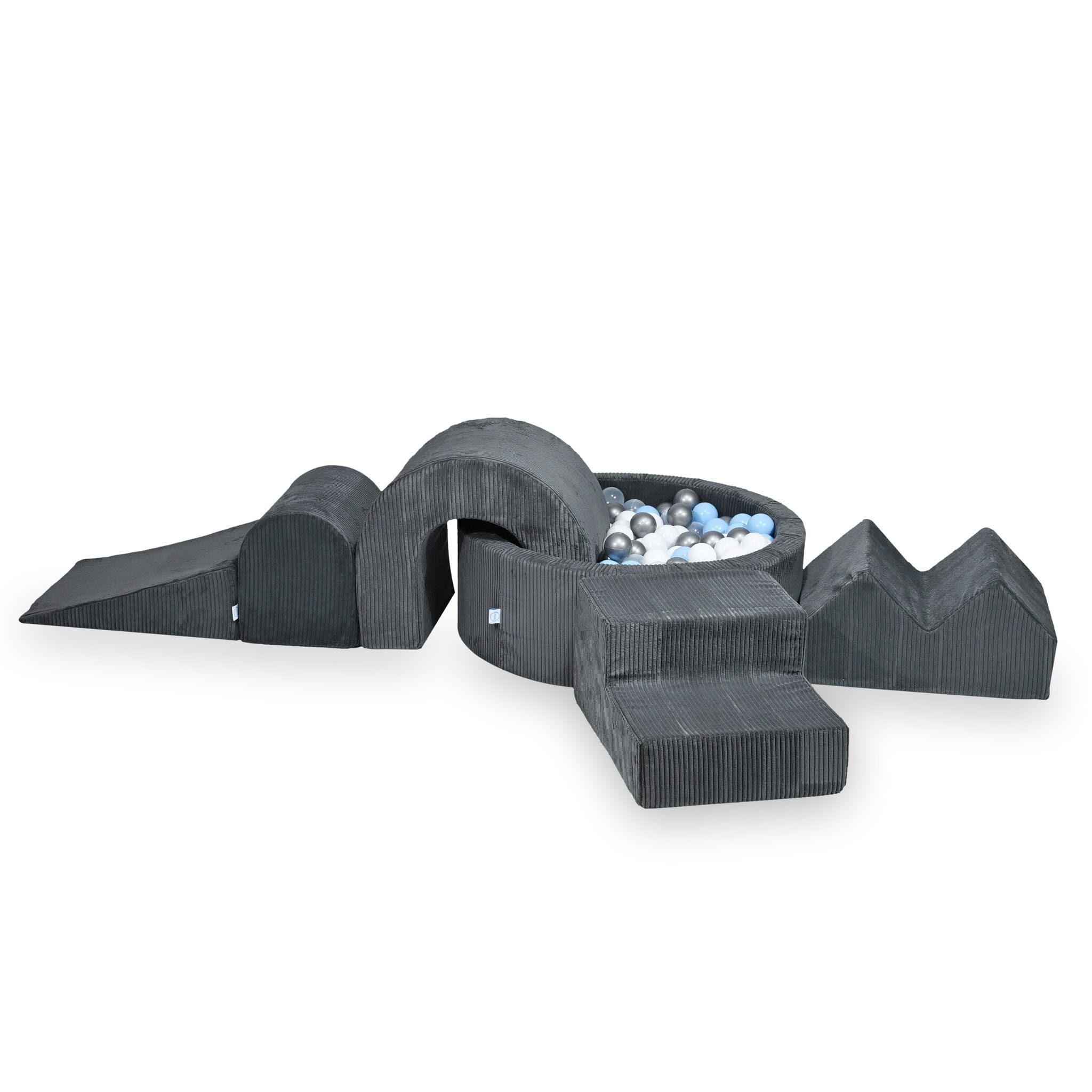 MiMii Schaumspielset XXL Cord graphite grey mit Bällebad 90x30cm und 200 Bällen zum selber Gestalten nach Wunsch
