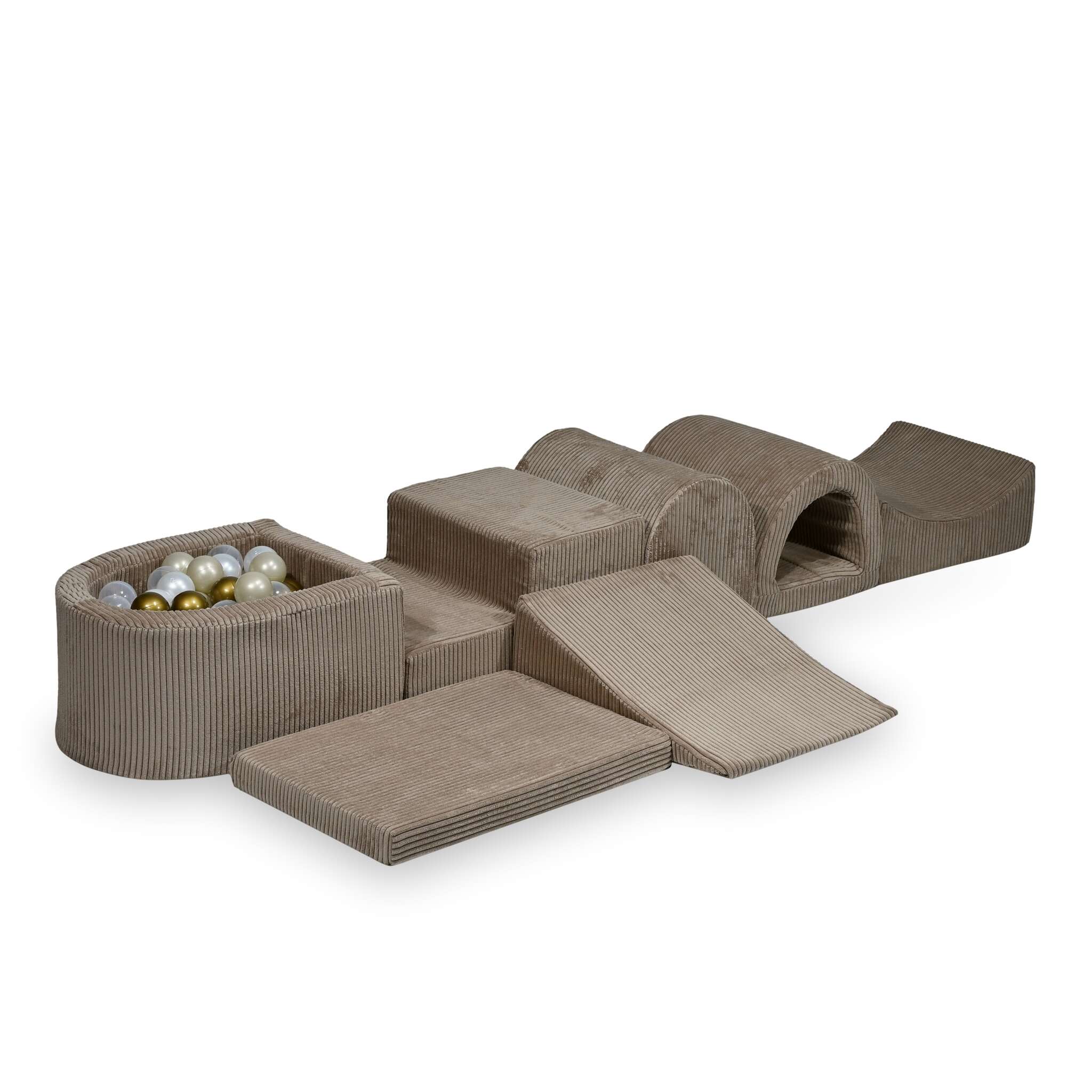 MiMii Schaumspielset XXL Cord toffee brown mit Bällebad und 100 Bälle zum selber Gestalten nach Wunsch