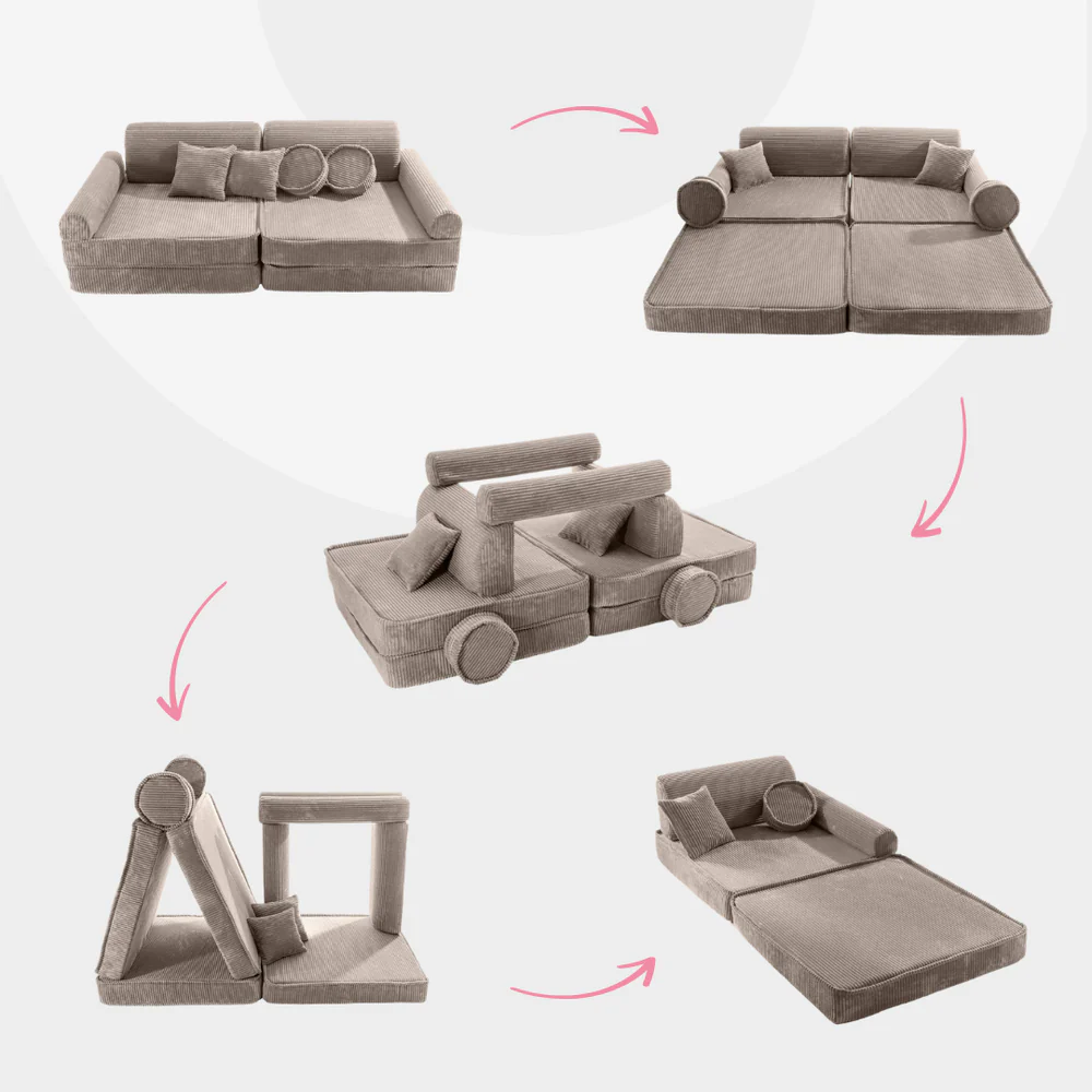 - Modulare Bauweise: Mit separaten Elementen, die flexibel kombiniert werden können, ermöglicht das Sofa unendliche kreative Spielideen.