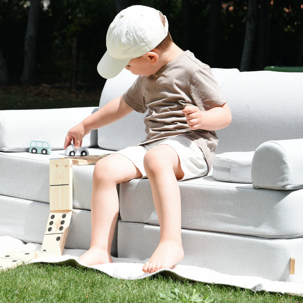 Schaffe einen Ort zum Ausruhen, Spielen und Träumen – mit dem Spielsofa Mini Plus Outzy, einem kompakten, modularen Spielsofa für Kinder, das du drinnen und draußen nutzen kannst.