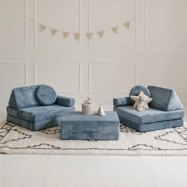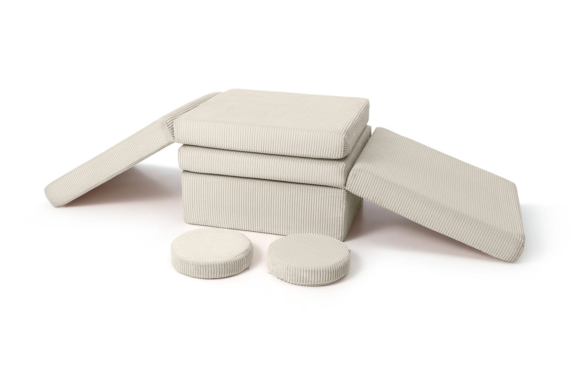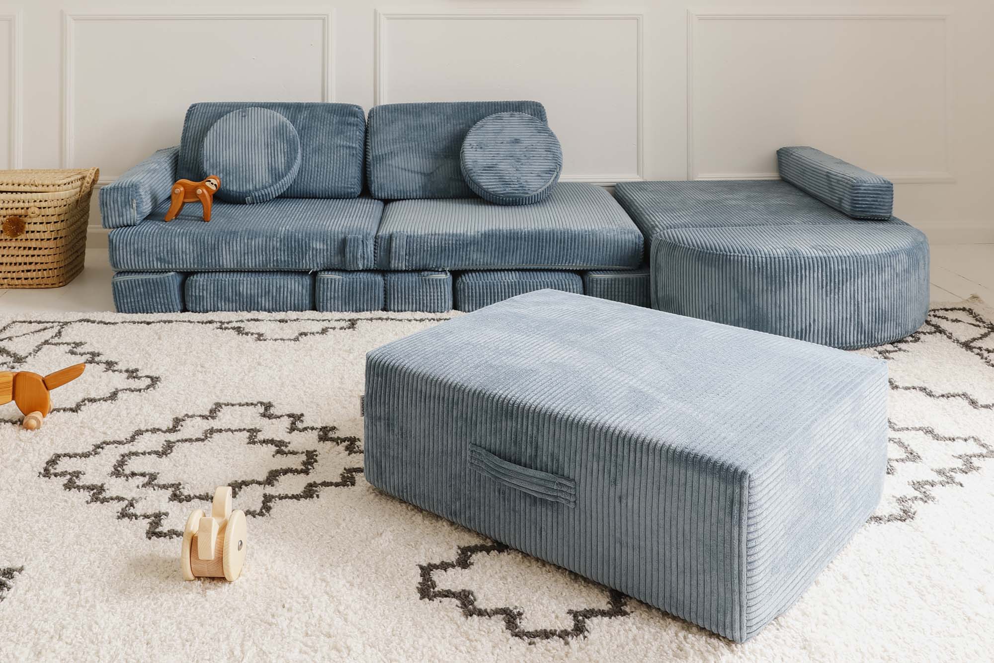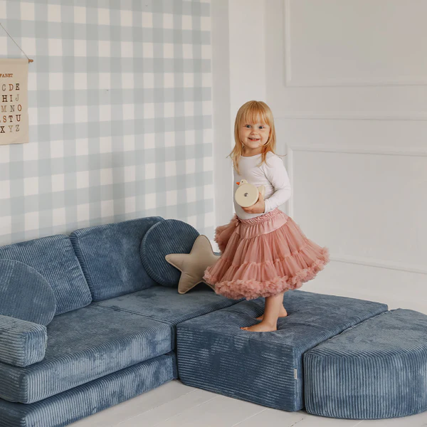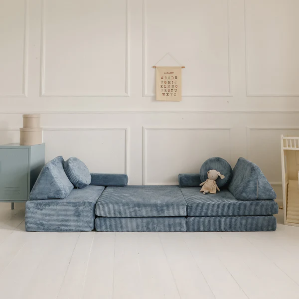 Das Shappy Play Sofa zeichnet sich durch eine clevere Konstruktion aus, bei der die Bodenkissen zusammengenäht sind, so dass zwei Elemente entstehen, die jeweils aus zwei Kissen bestehen. Dies sorgt nicht nur für optimalen Komfort beim Schlafen, sondern bietet auch Stabilität und Halt beim Spielen. Darüber hinaus erzeugt der für die Konstruktion des Sofas verwendete Stoff eine natürliche Reibung, die dazu beiträgt, die Elemente zusammenzuhalten und ein sicheres und nahtloses Spielerlebnis zu gewährleisten.