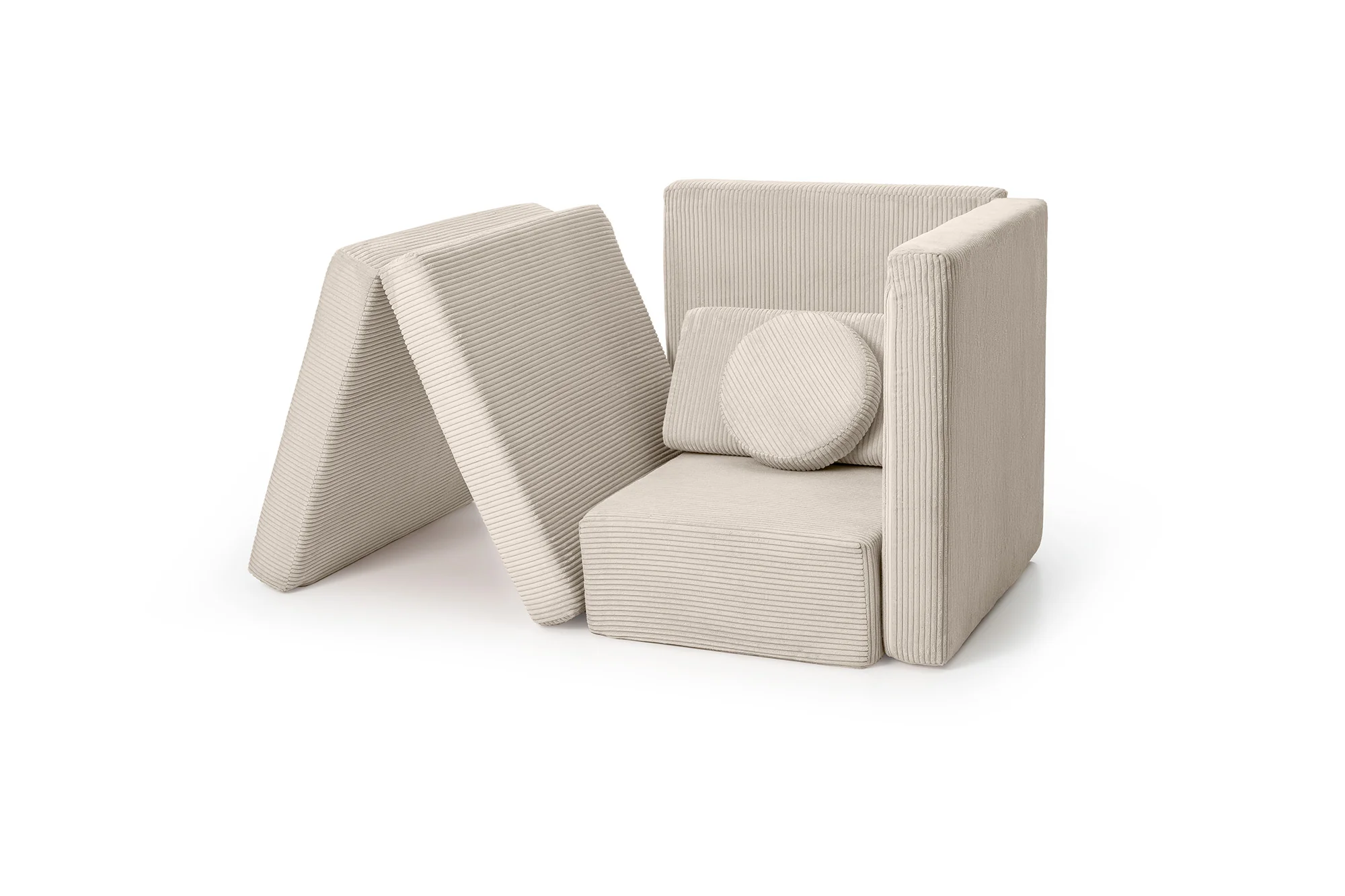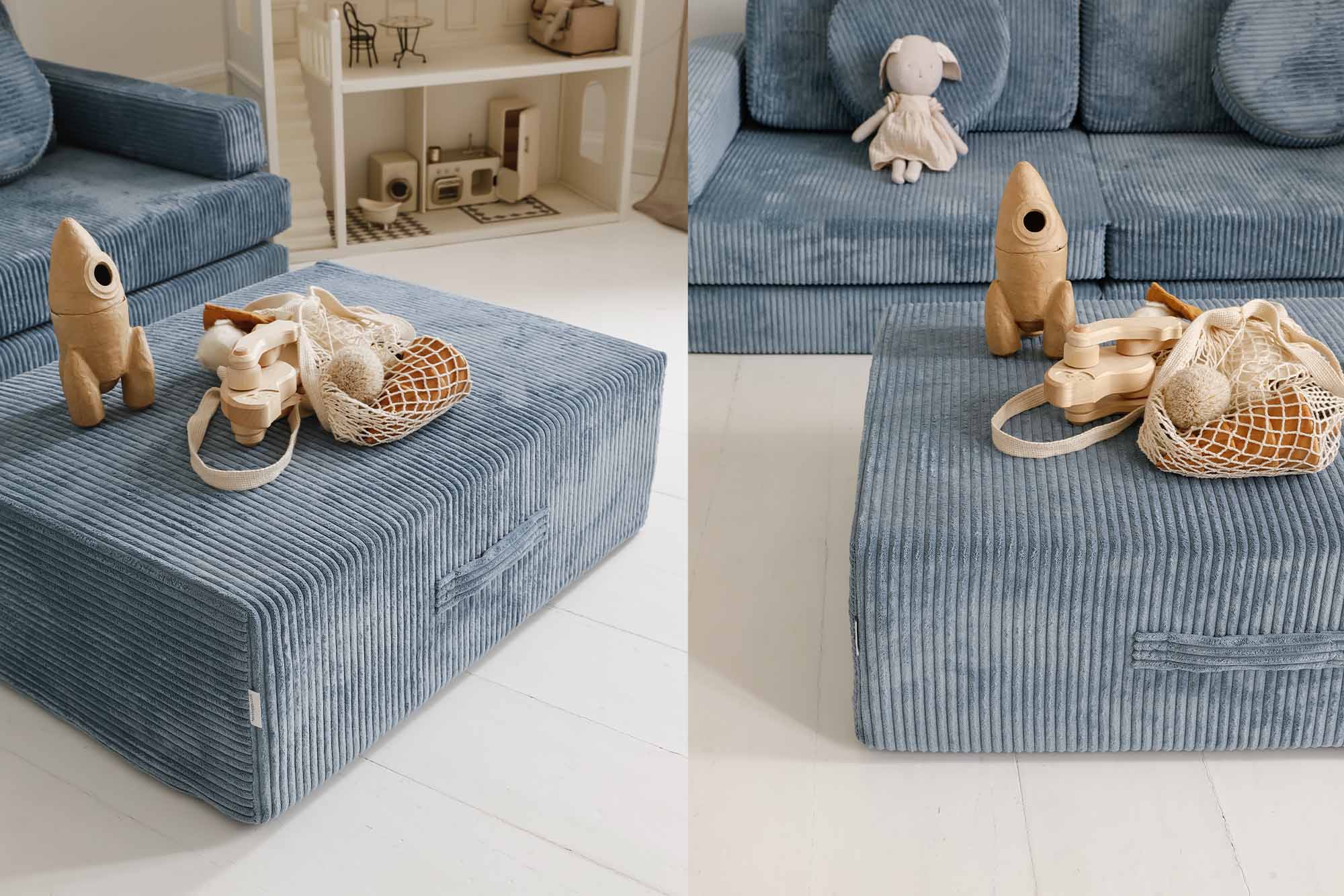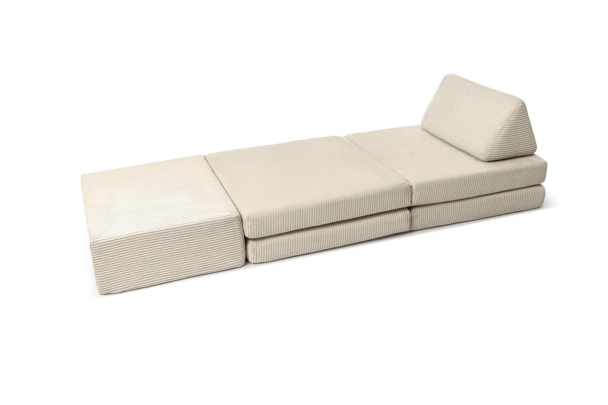 Es dient auch als Erweiterung Ihres Play Sofas! Mit einer Verlängerung von 60 cm auf insgesamt 220 cm Länge lässt es sich im Handumdrehen in ein gemütliches Gästebett verwandeln. Durch die identische Breite fügt es sich nahtlos in das Sofa-Design ein, bietet zusätzliche Stabilität und eröffnet unzählige kreative Nutzungsmöglichkeiten.