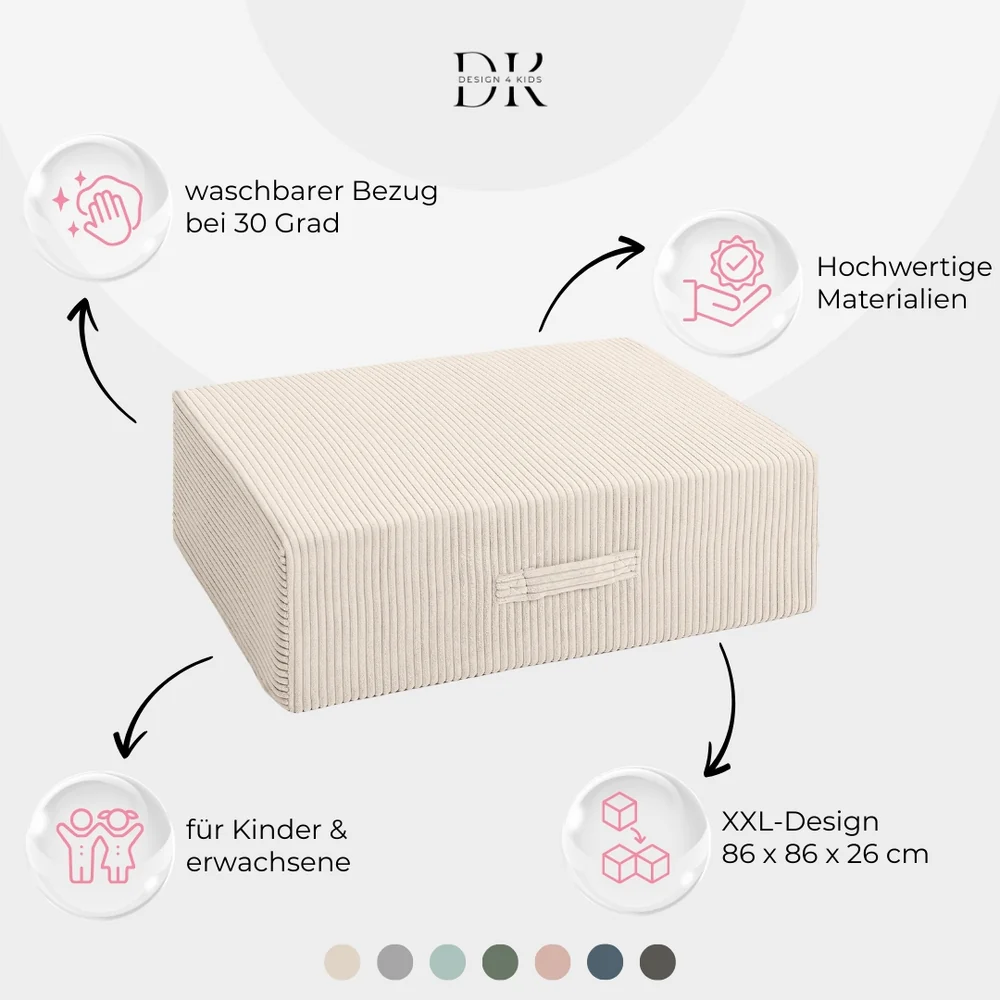- Pflege: Bezug abnehmbar und bei 30 °C im Schonwaschgang waschbar (nicht trocknergeeignet)