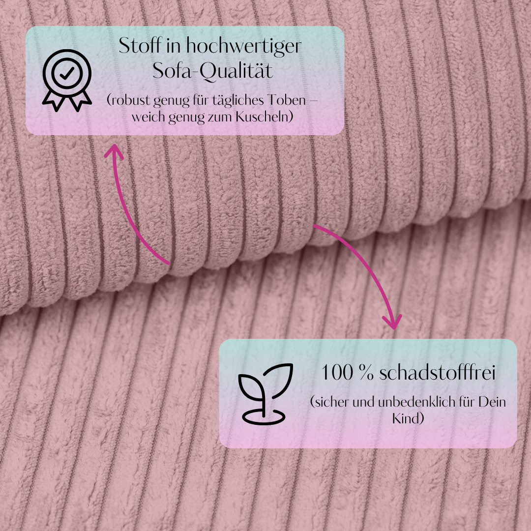 Weicher Cord: Die sorgfältig ausgewählten Materialien gewährleisten eine lange Lebensdauer und einfache Pflege. Das bedeutet weniger Sorgen für dich und mehr Gemütlichkeit für deine Kleinen.