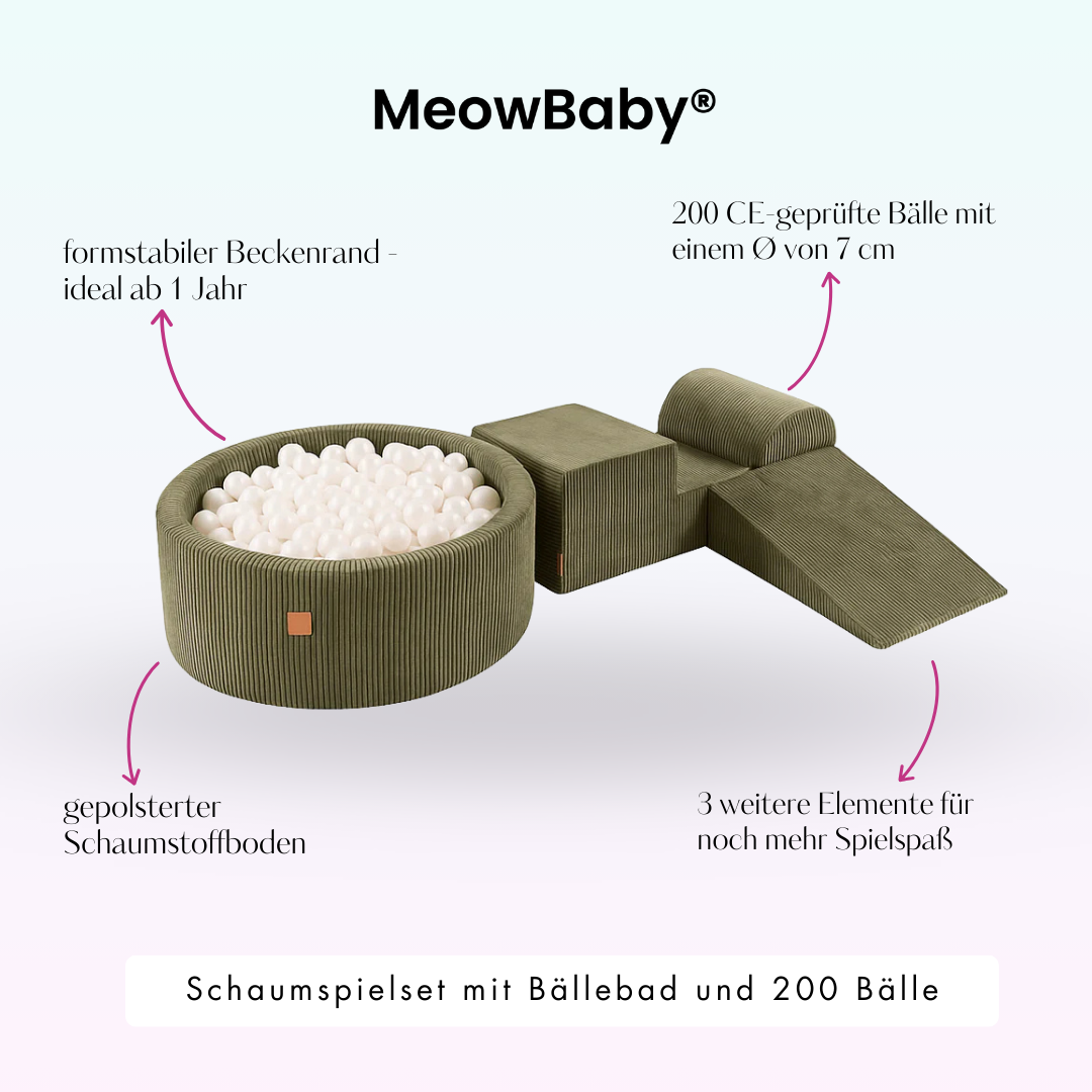 Weiterführende Links zu "MeowBaby Schaumspielset Ästhetik Cord khaki mit Bällebad und 200 Bälle"
