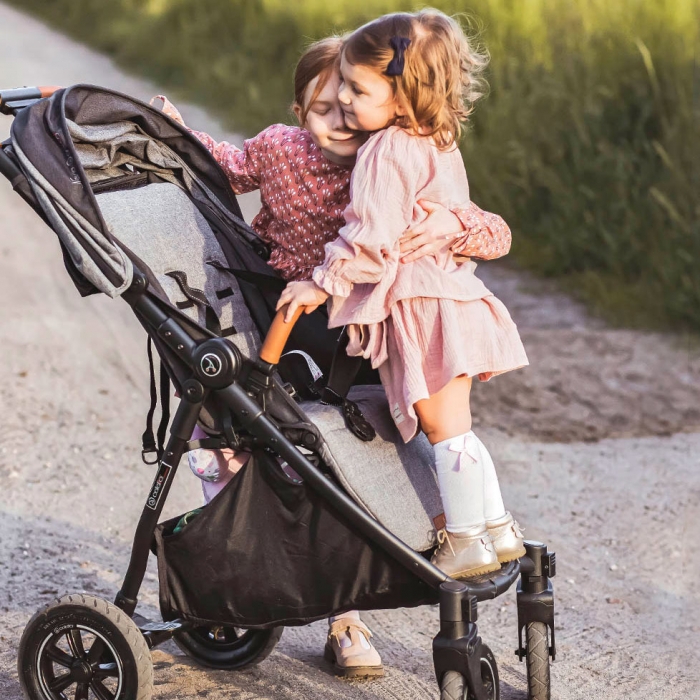 - Verstellbarer Griff: Ermöglicht die Anpassung der Höhe an die Körpergröße der Eltern.