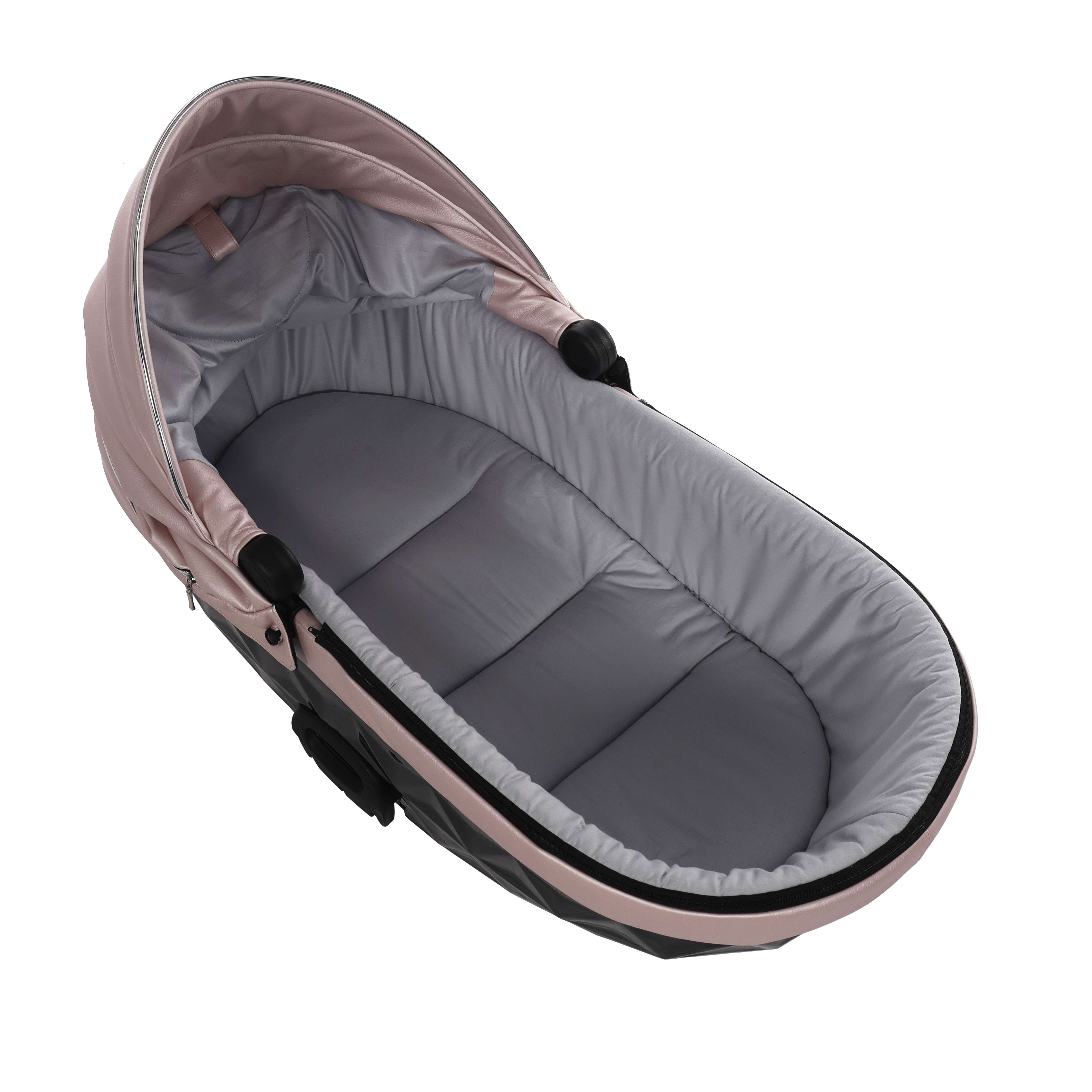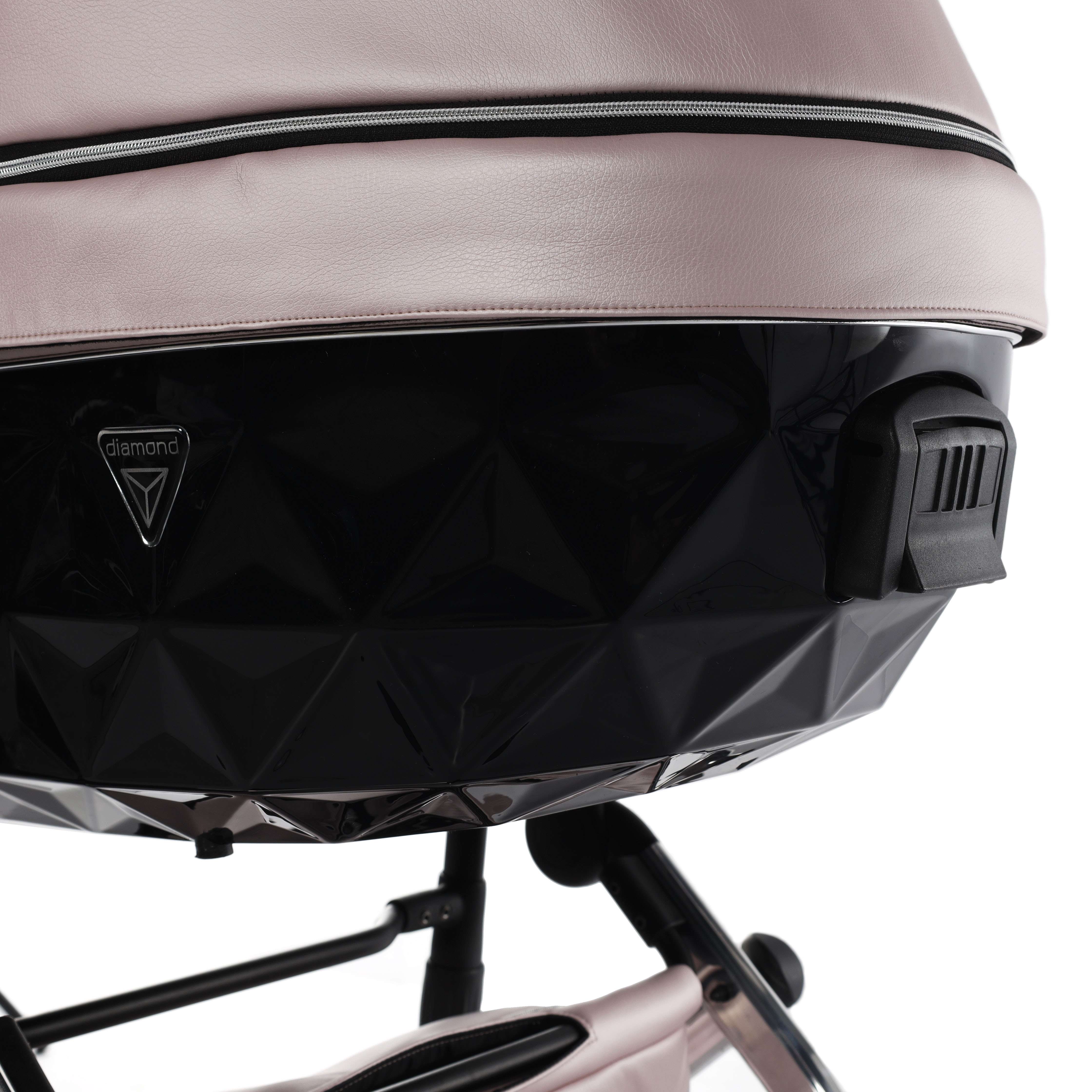 Die verbesserte Babywanne. Die markante Optik mit dem einzigartigen Diamantschliffe wird jetzt noch präziser mit einem besseren Formkanteneffekt hergestellt. Abgesehen von der prachtvollen Erscheinung besitzt die Version 2.0 ein neues einzigartiges und integriertes Ausstecksystems. Bei diesem System benötigst du keine zwei Hände mehr, um die Babywanne vom Gestell zu entriegeln. Ein-Hand-Ausstecksystem - jetzt ist nur noch einmal klicken notwendig! Darüber hinaus ist der Babyschalenbezug durch seine neue Form und der zwei seitlichen Reißverschlüsse viel praktischer, was Euch als Eltern die Nutzung bequemer macht.