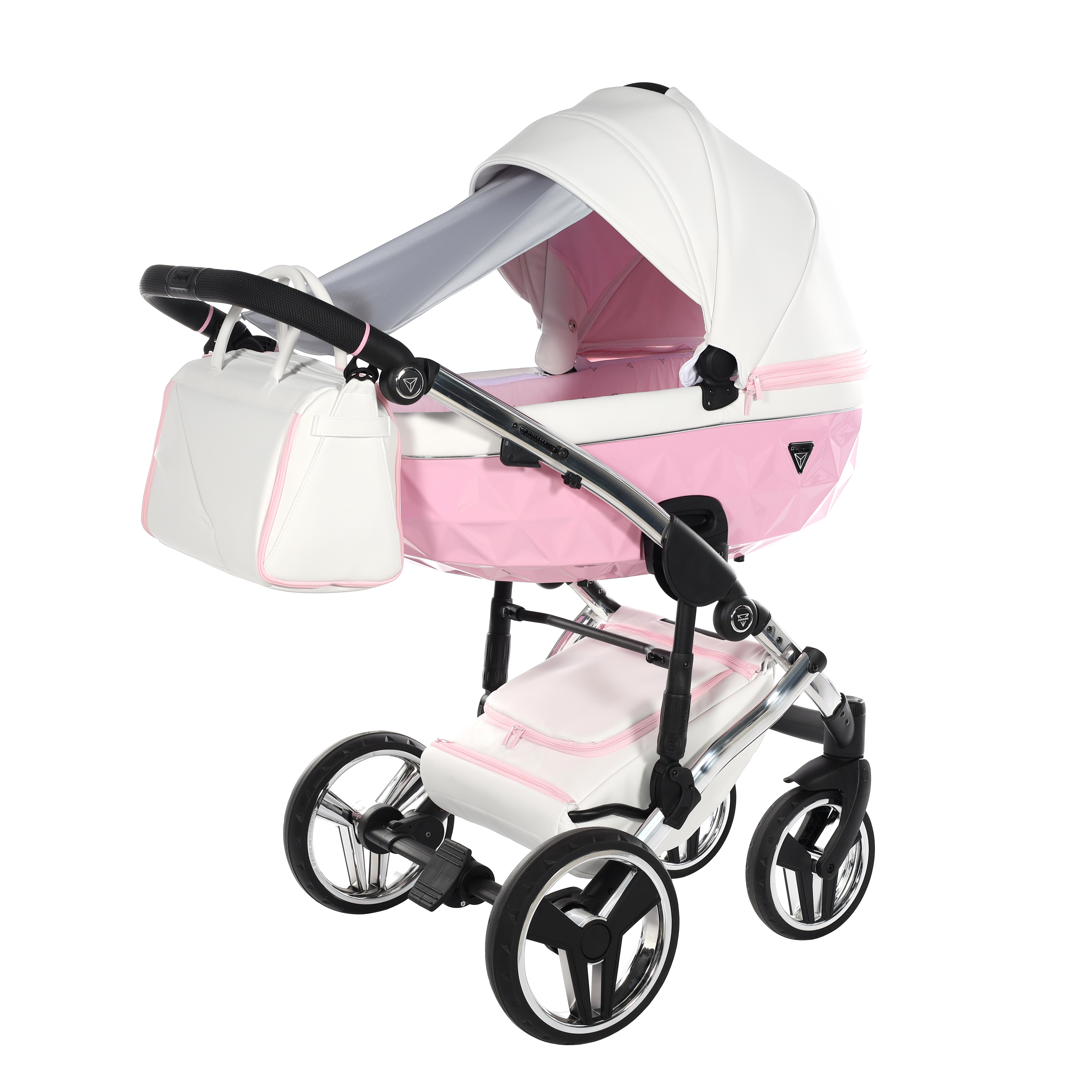 JUNAMA Kombi Kinderwagen CANDY - weiß/pink