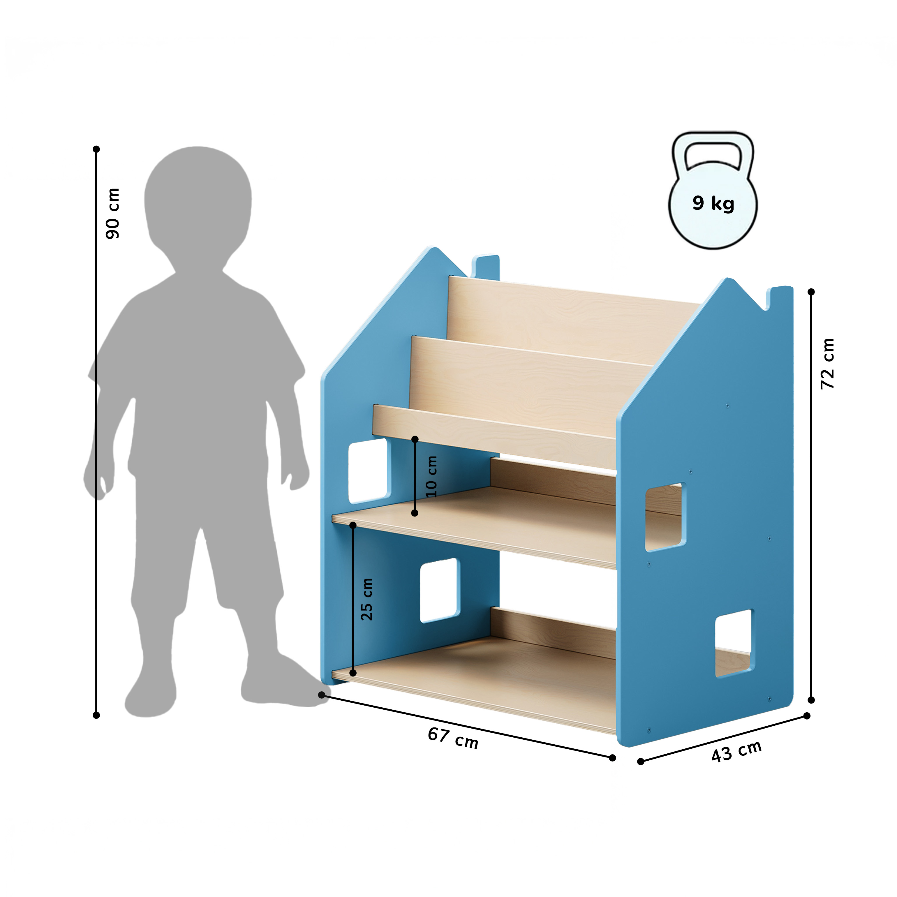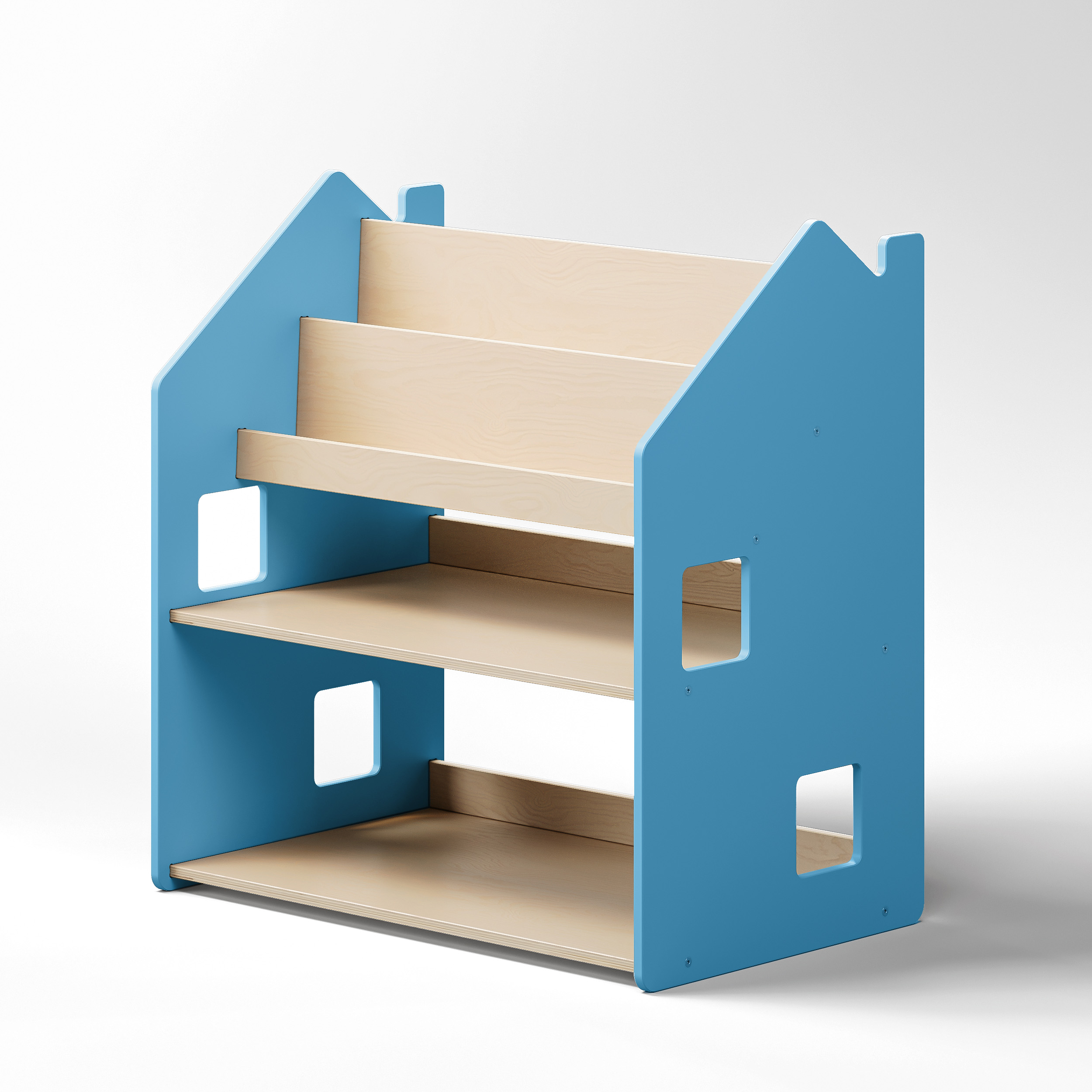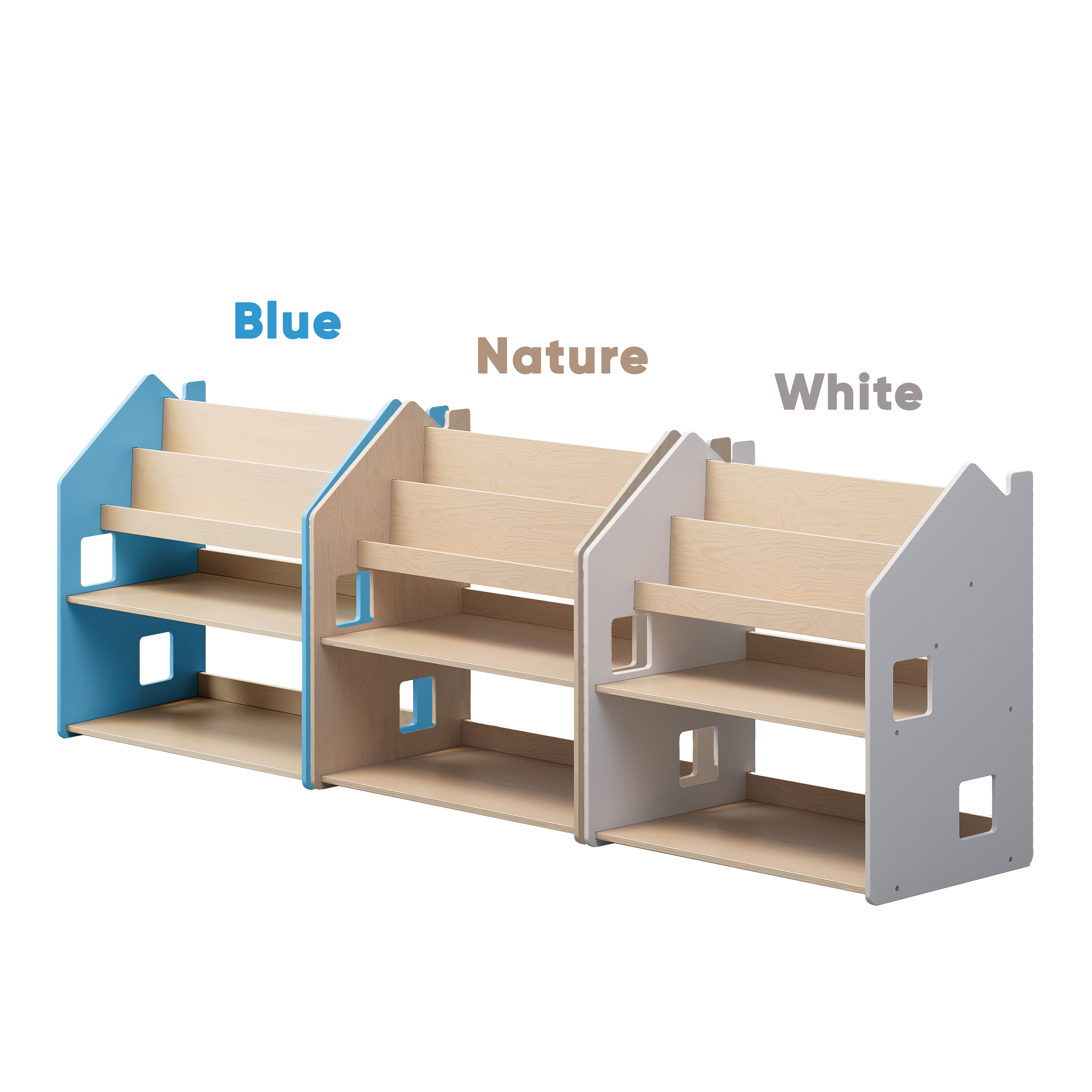Mit seinem schlichten, kindgerechten Design passt das Regal in jedes moderne Kinderzimmer. Die Kombination aus farbigen MDF-Seitenwänden und lackiertem Birkensperrholz sorgt für eine ästhetische, stabile und sichere Lösung. Alle Ecken und Kanten sind abgerundet – für maximale Sicherheit beim täglichen Gebrauch.
