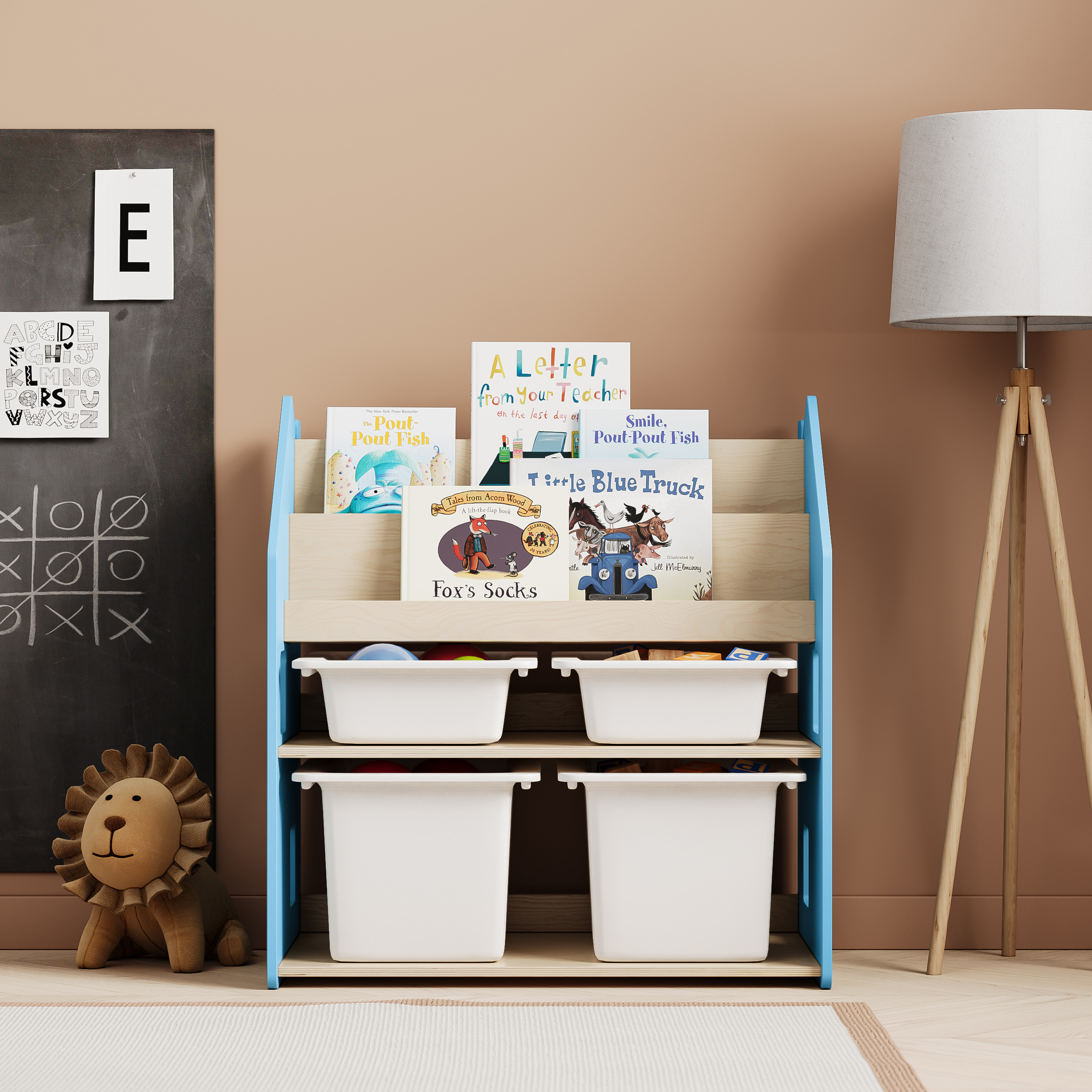 BusyKids Montessori 2-in-1 Bücherregal für Kinder - zart blau