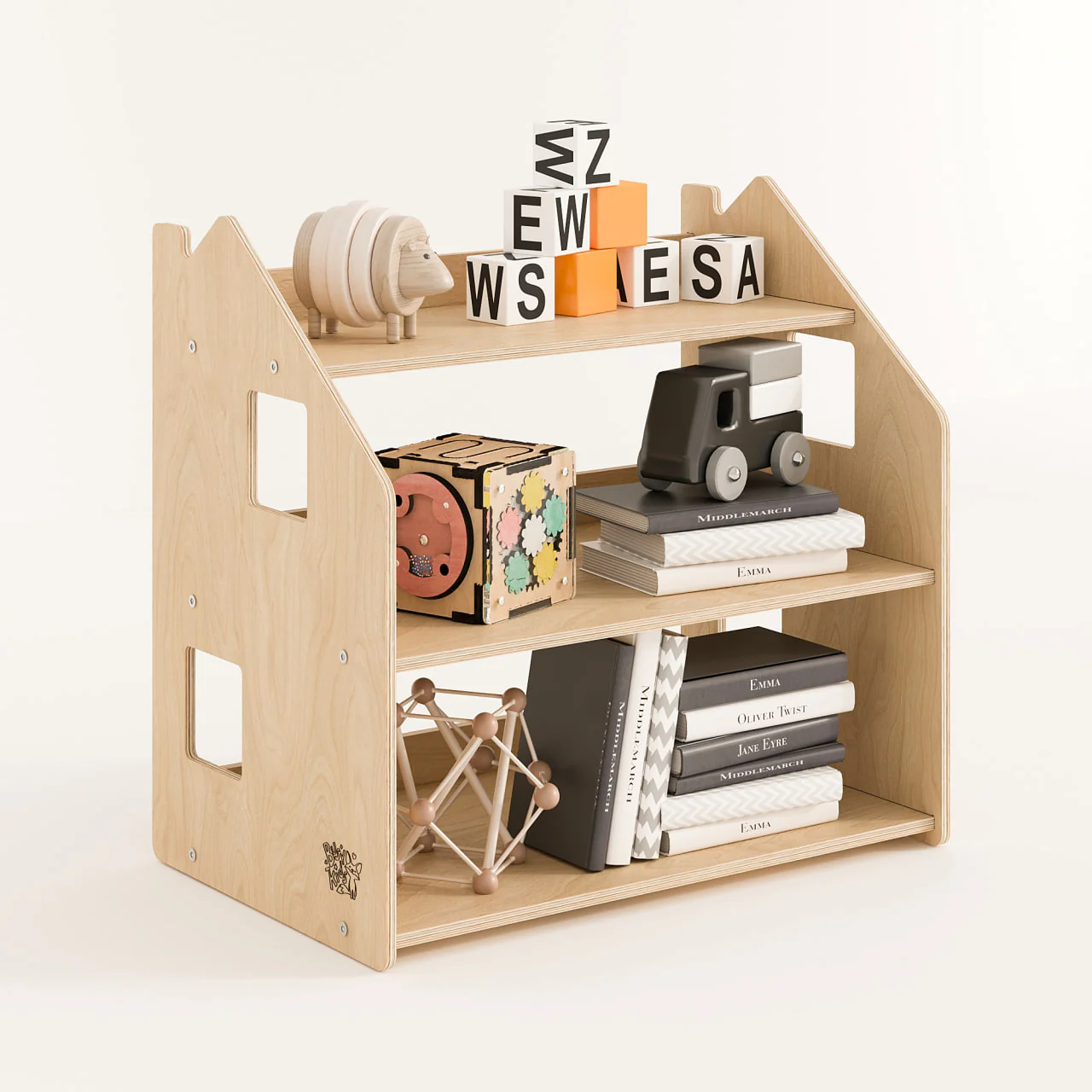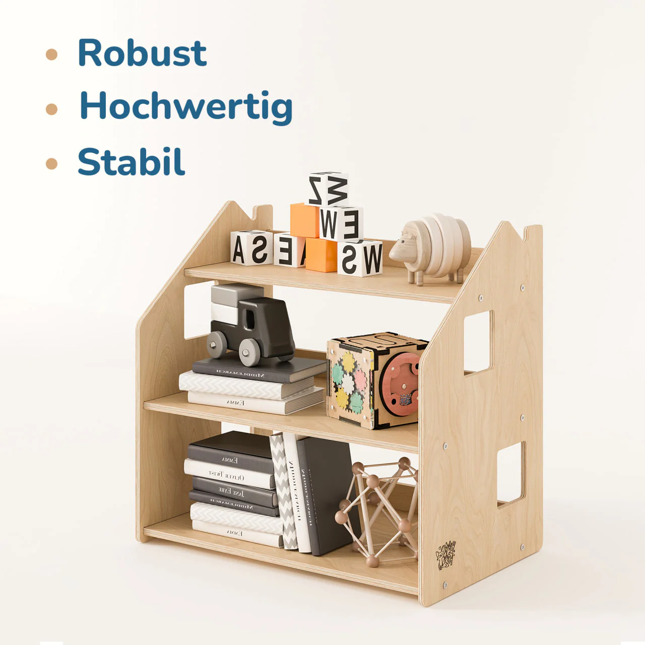 BabyWood Montessori 2-in-1 Bücherregal aus Holz für Bücher und Spielzeug