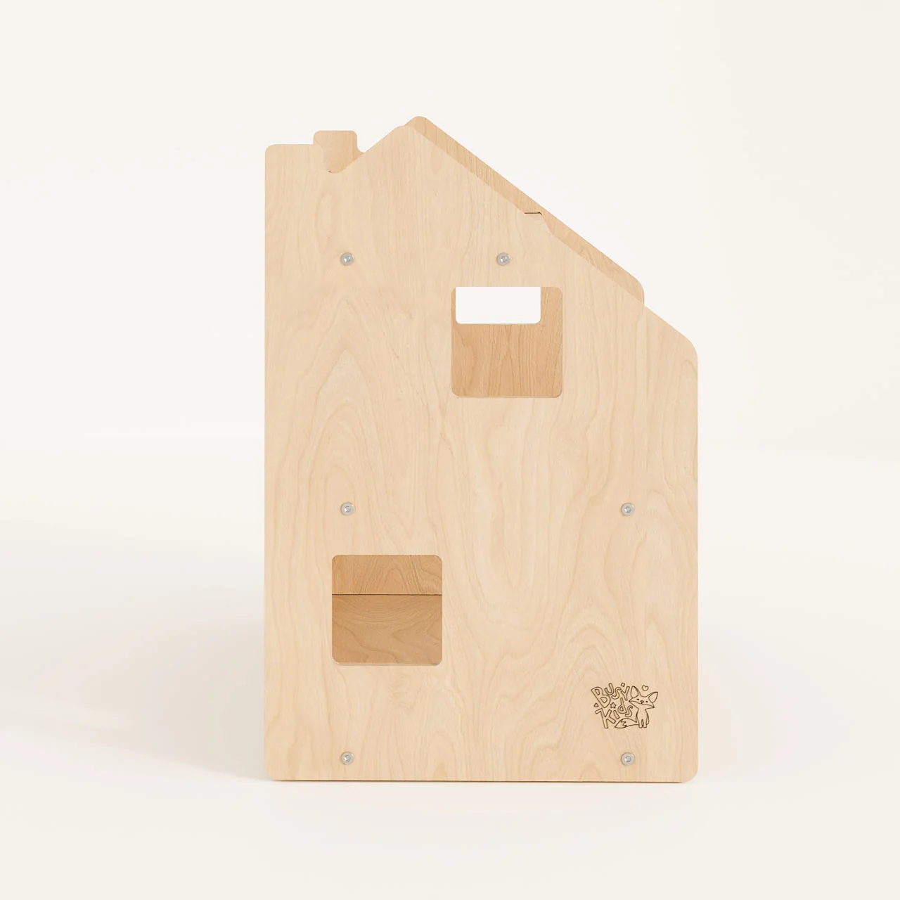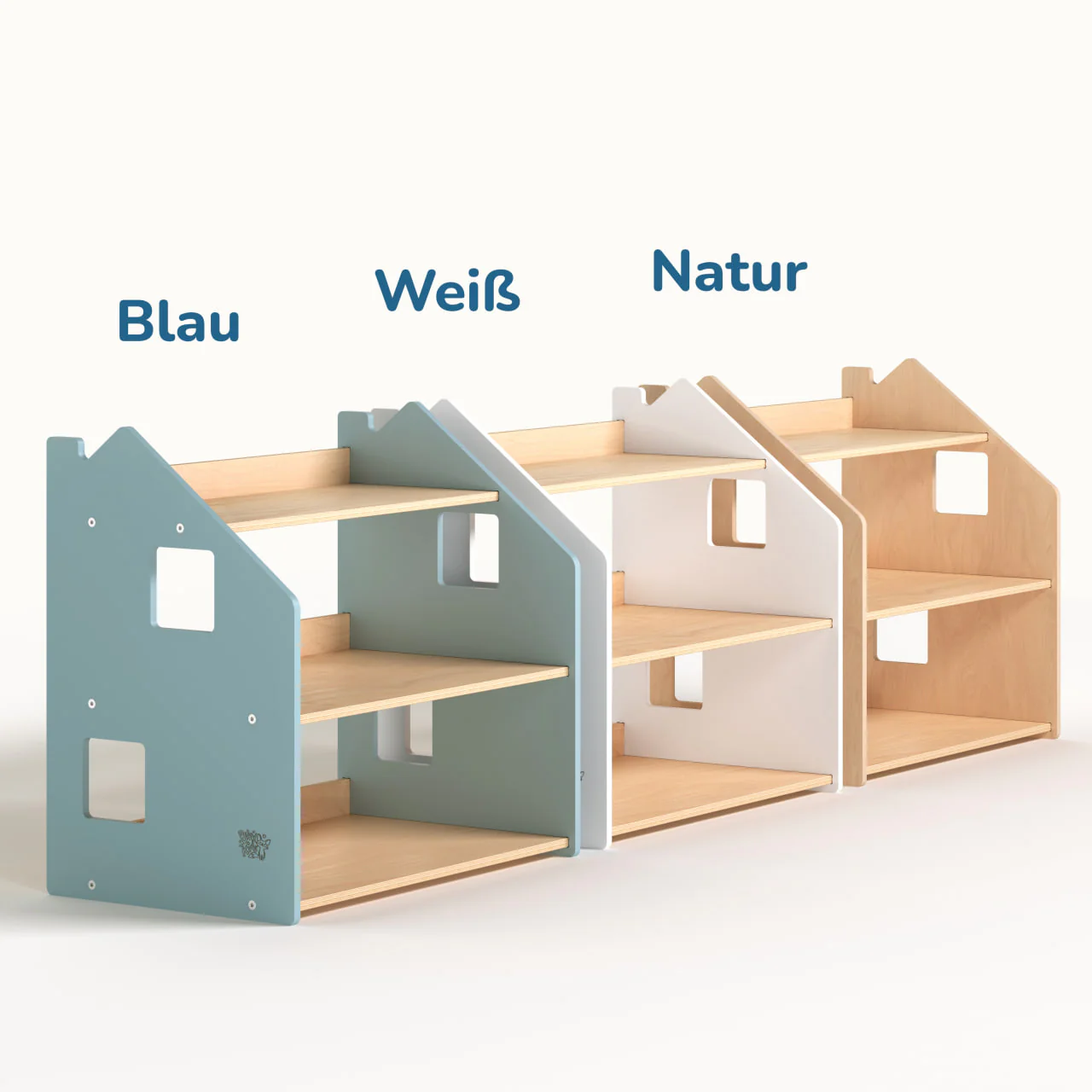 Gefertigt aus hochwertigem, lackiertem Birkensperrholz ist das Regal besonders stabil und langlebig. Alle Kanten sind sorgfältig abgerundet und der Lack basiert auf wasserlöslicher, kinderfreundlicher Beschichtung – für maximale Sicherheit im Kinderzimmer.