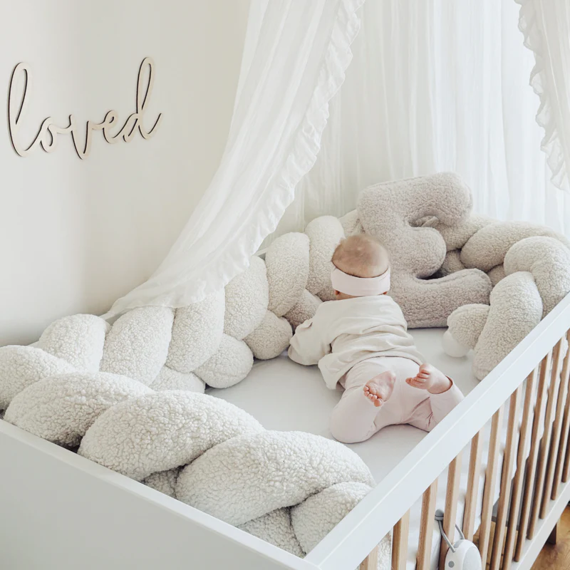 Die Bettumrandung aus der Bearly Kollektion schafft eine sichere und gemütliche Schlafumgebung für Babys. Der weiche Zopf dämpft den Kontakt mit den Gitterstäben und verleiht dem Babybett einen eleganten Charakter. Perfekt für Eltern, die Sicherheit, Komfort und ästhetisches Design verbinden möchten.