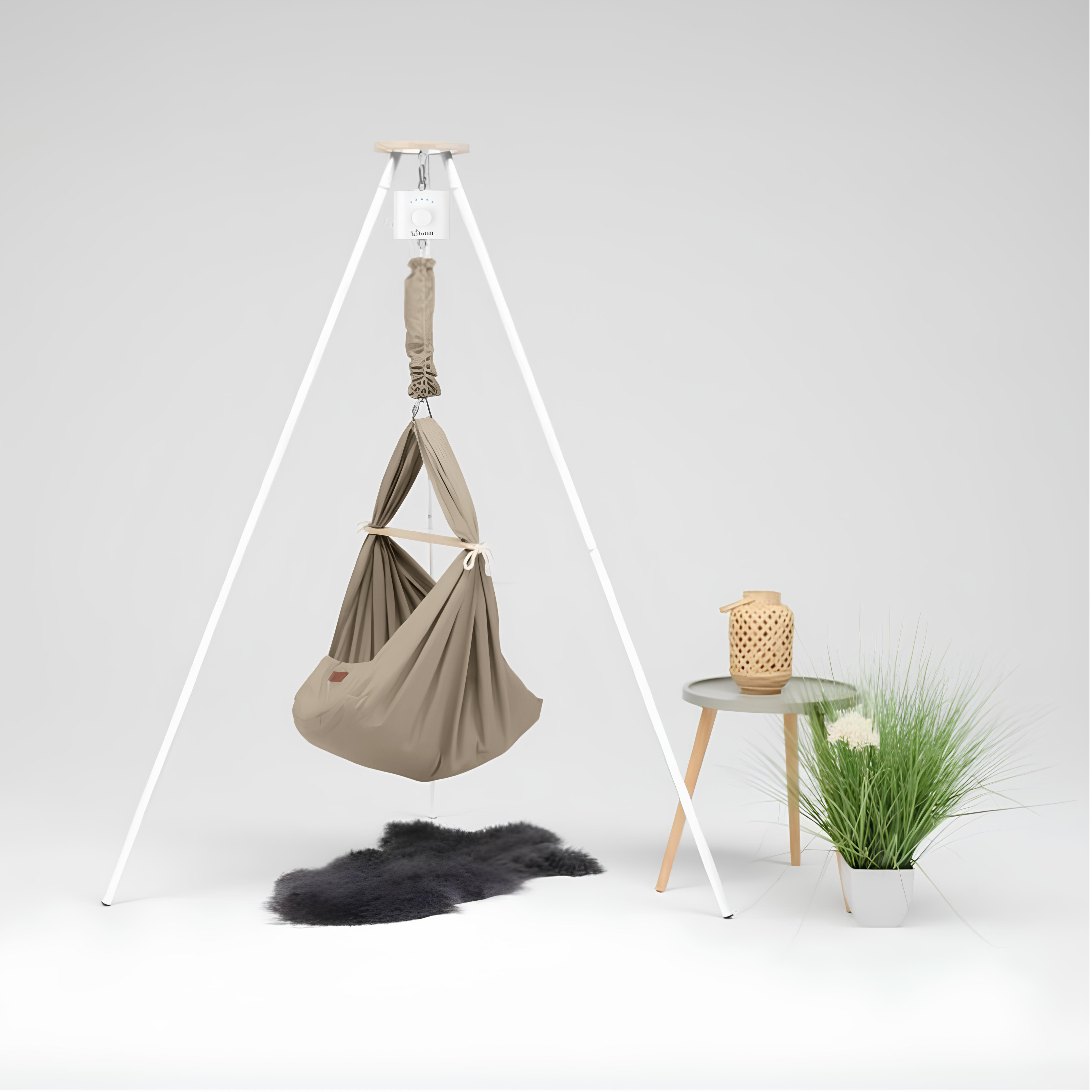 Design4Kids Federwiege Baby Classic mit Motor & TIPI-Gestell weiß - taupe