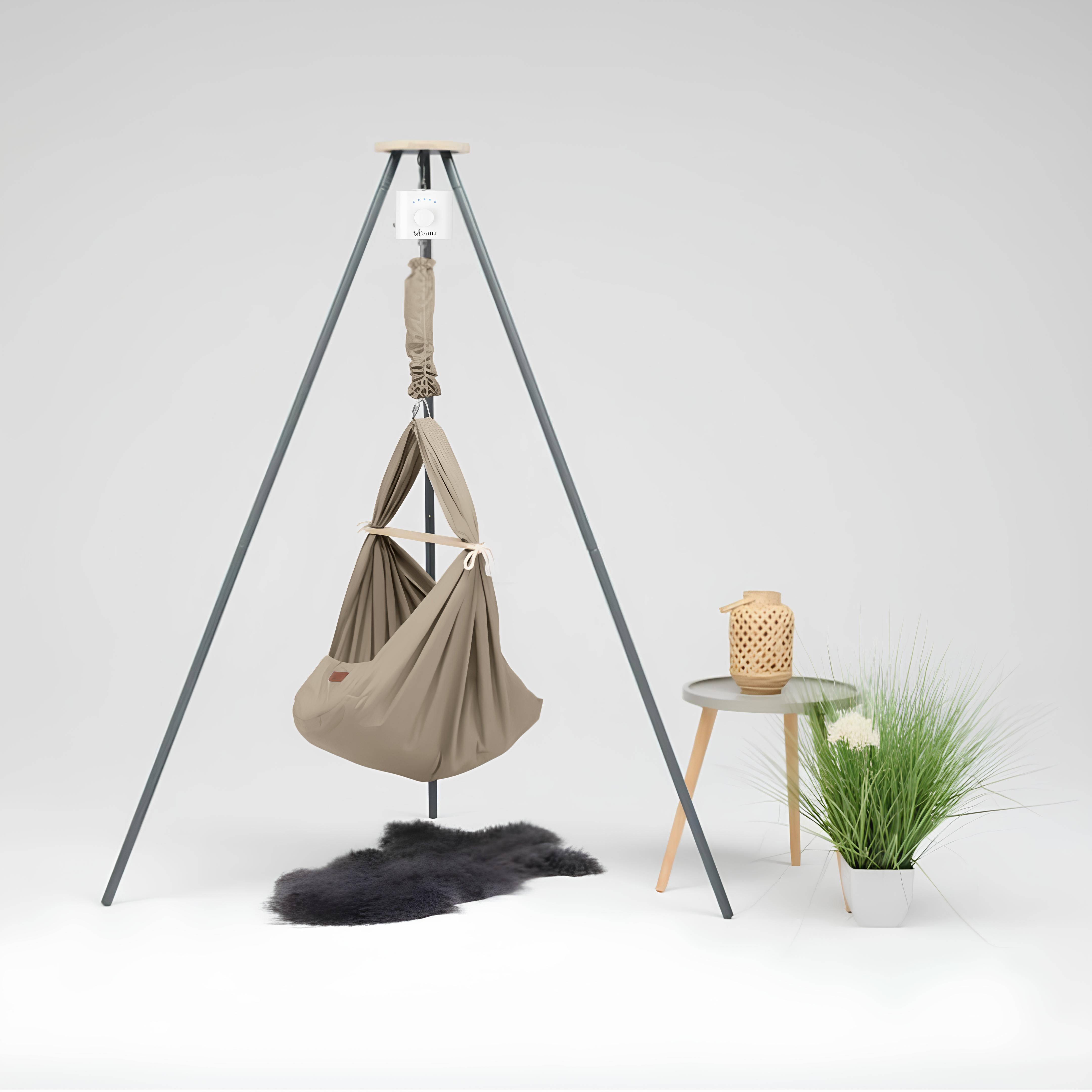 Design4Kids Federwiege Baby Classic mit Motor & TIPI-Gestell anthrazit - taupe