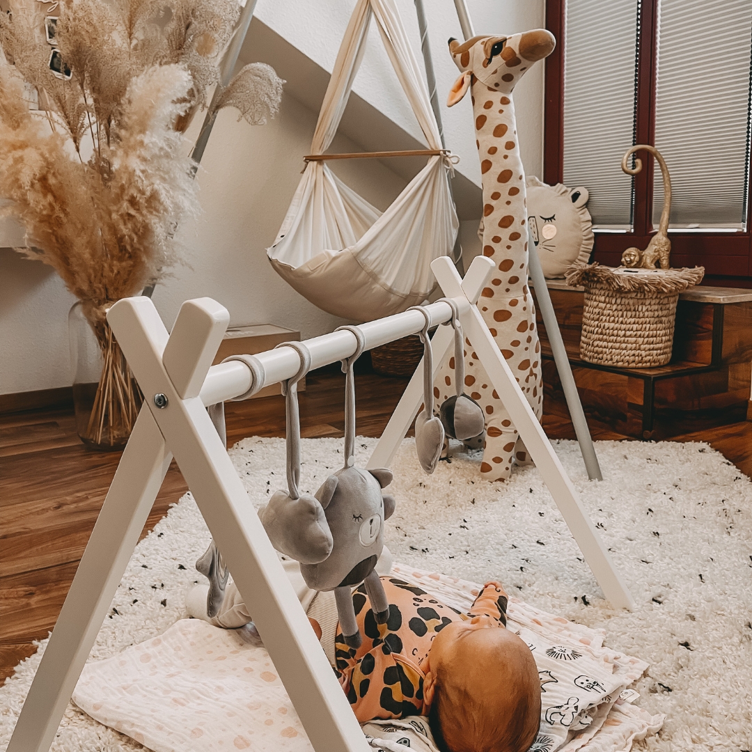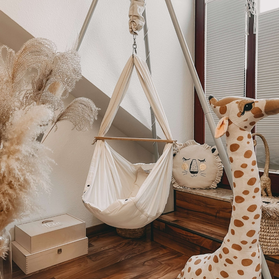 - Immer ausreichend Raumfreiheit einplanen, sodass die Federwiege nicht gegen Möbel oder Wände stößt.