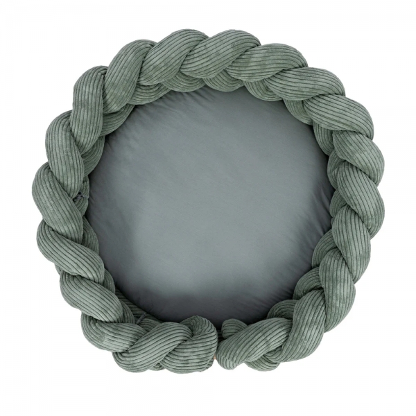 Die Oberseite der Matte besteht aus 100 % hochwertiger Baumwolle – sanft und atmungsaktiv, ideal für empfindliche Babyhaut. Die Unterseite sowie der 300 cm lange geflochtene Rand sind aus weichem, strukturiertem Cordstoff gefertigt – dem typischen Material unserer beliebten Aesthetic-Kollektion. Der geflochtene Nestchenrand lässt sich dank angenähter Stoffbänder sicher an der Matte befestigen.