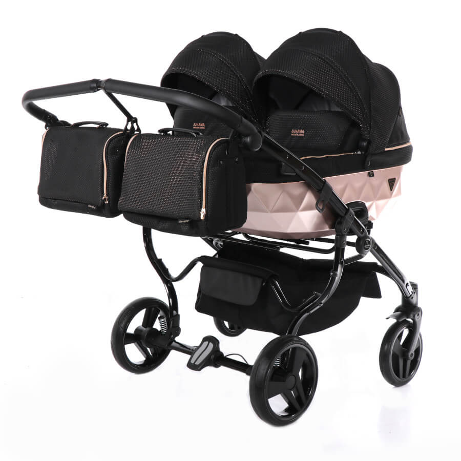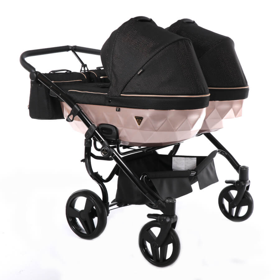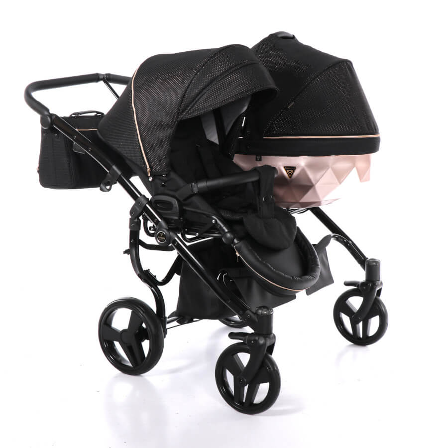 JUNAMA Zwillingskinderwagen Mirror Satin Duo 02 - schwarz/roségold