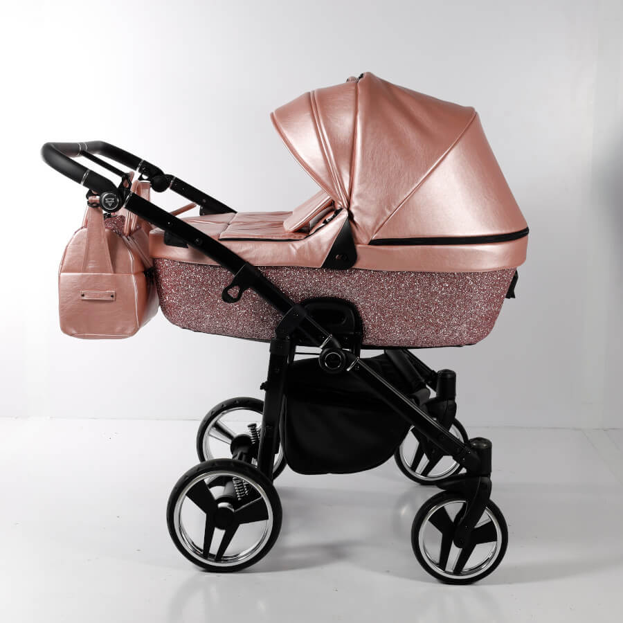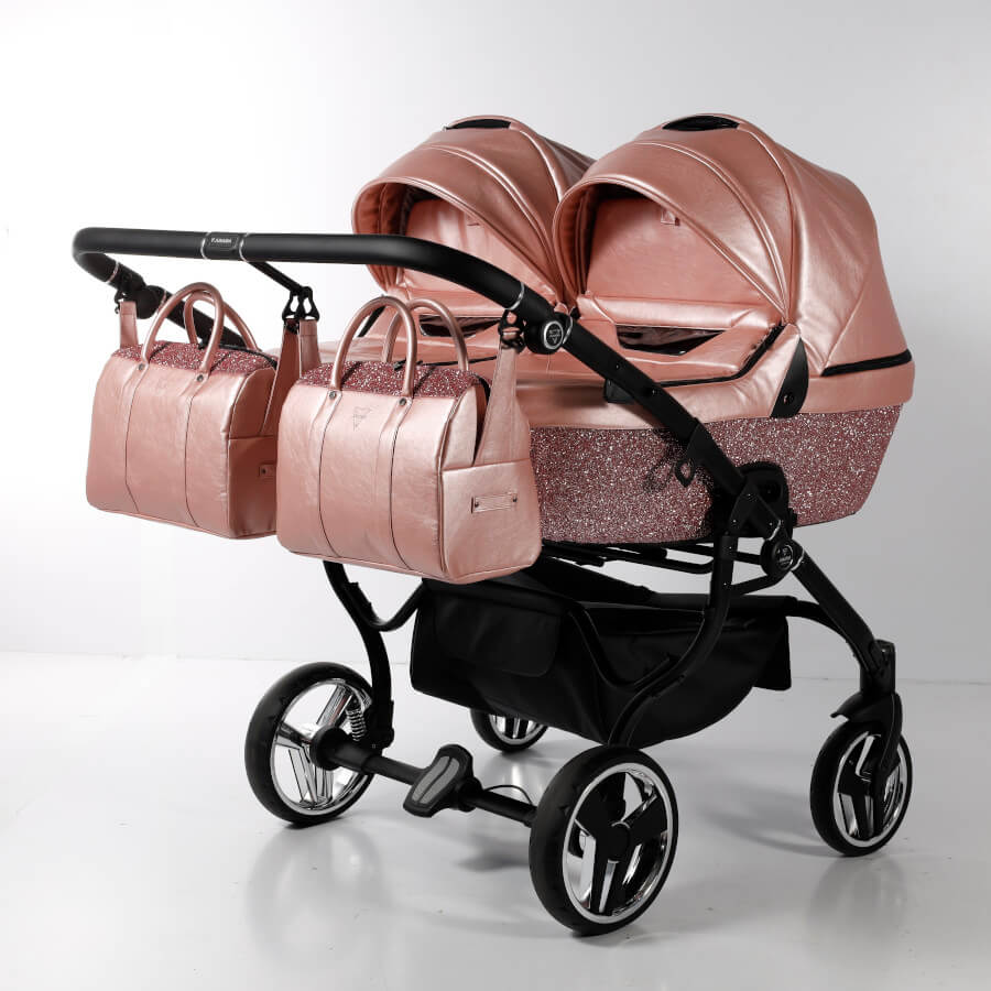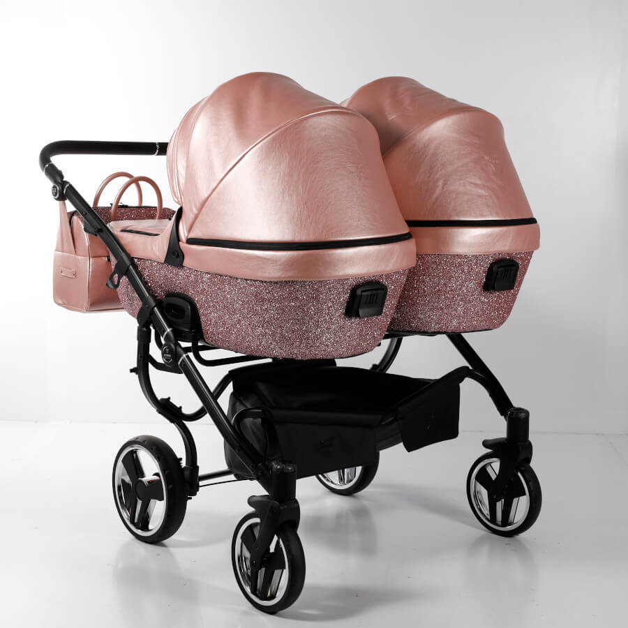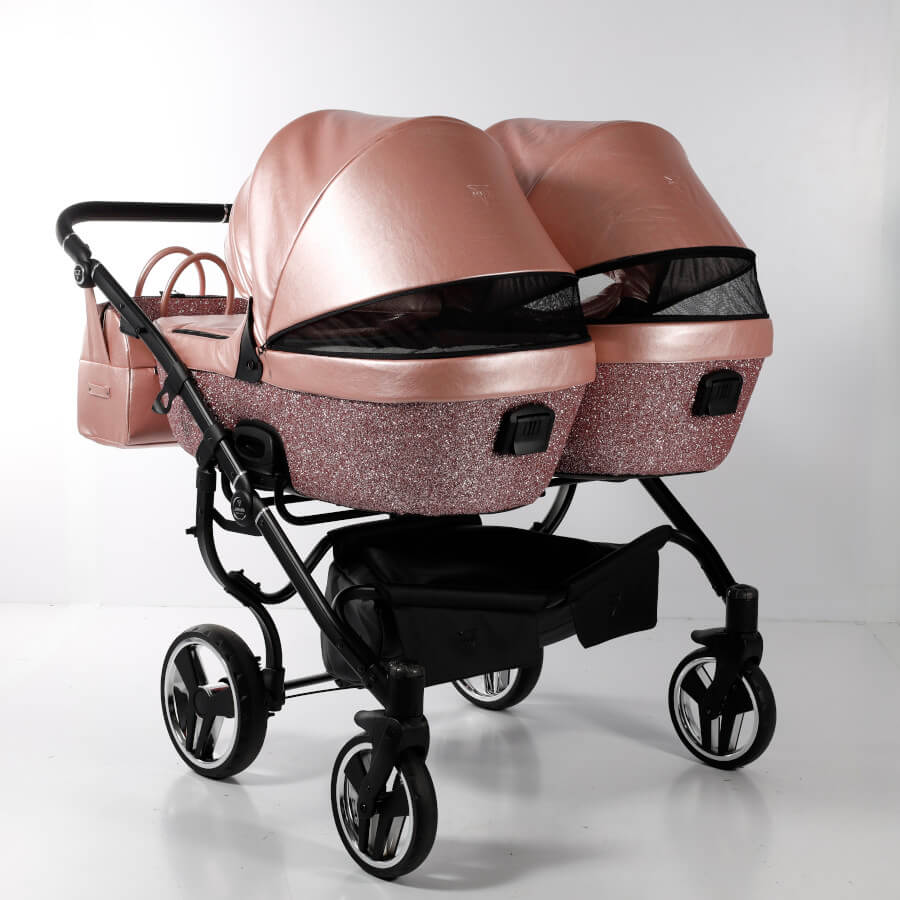 JUNAMA Zwillingskinderwagen Glitter 02 - pastellrosa/schwarz