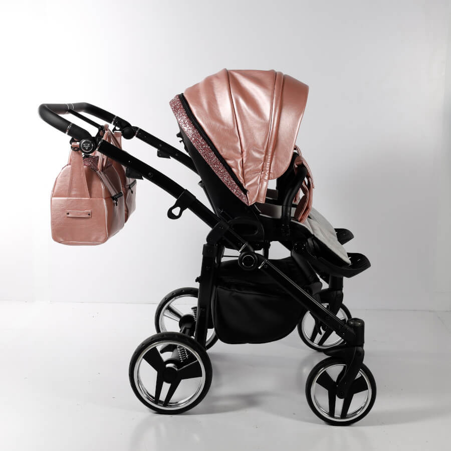 JUNAMA Zwillingskinderwagen Mirror Satin Duo 02 - schwarz/roségold Inhalt 1 Stück
