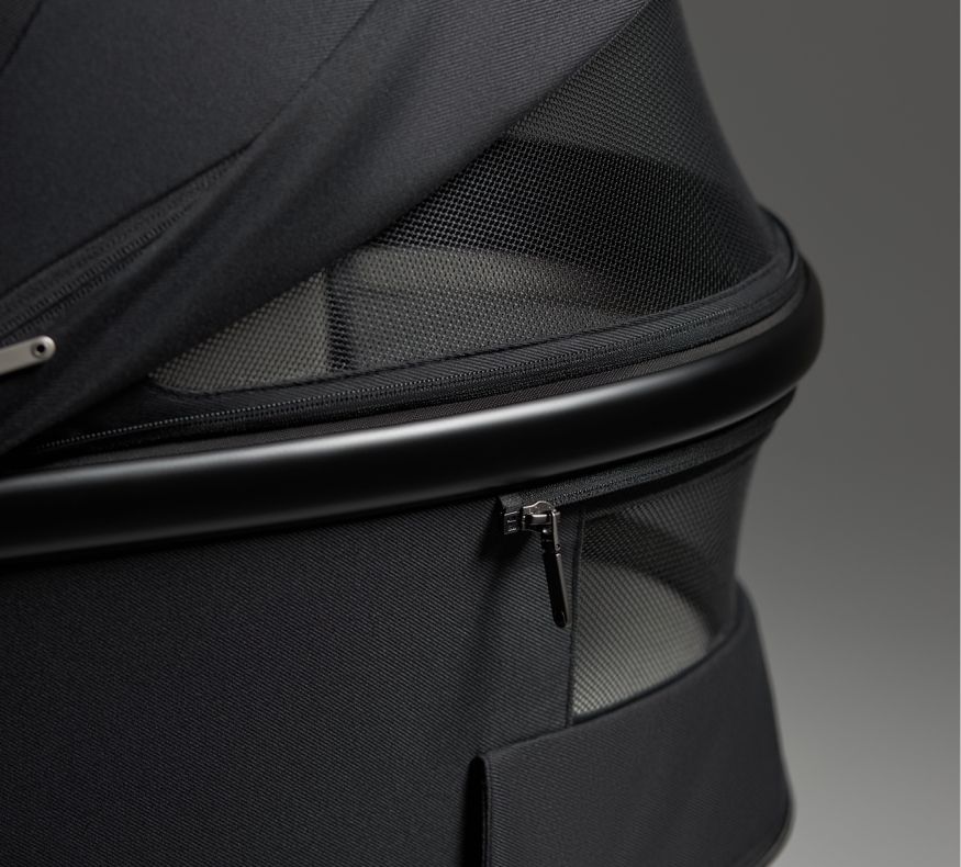 Belüftung 360°. Damit Dein Kind bequem und kühl bleibt, verfügt der IQ über ein ausgeklügeltes Atmungssystem, das an den richtigen Stellen für Belüftung sorgt – vom Verdeck des Kinderbettes über die Fußstütze bis zum Verdeck der Sitzeinheit. Auch die Rückenlehne hat eine Netzbelüftung.