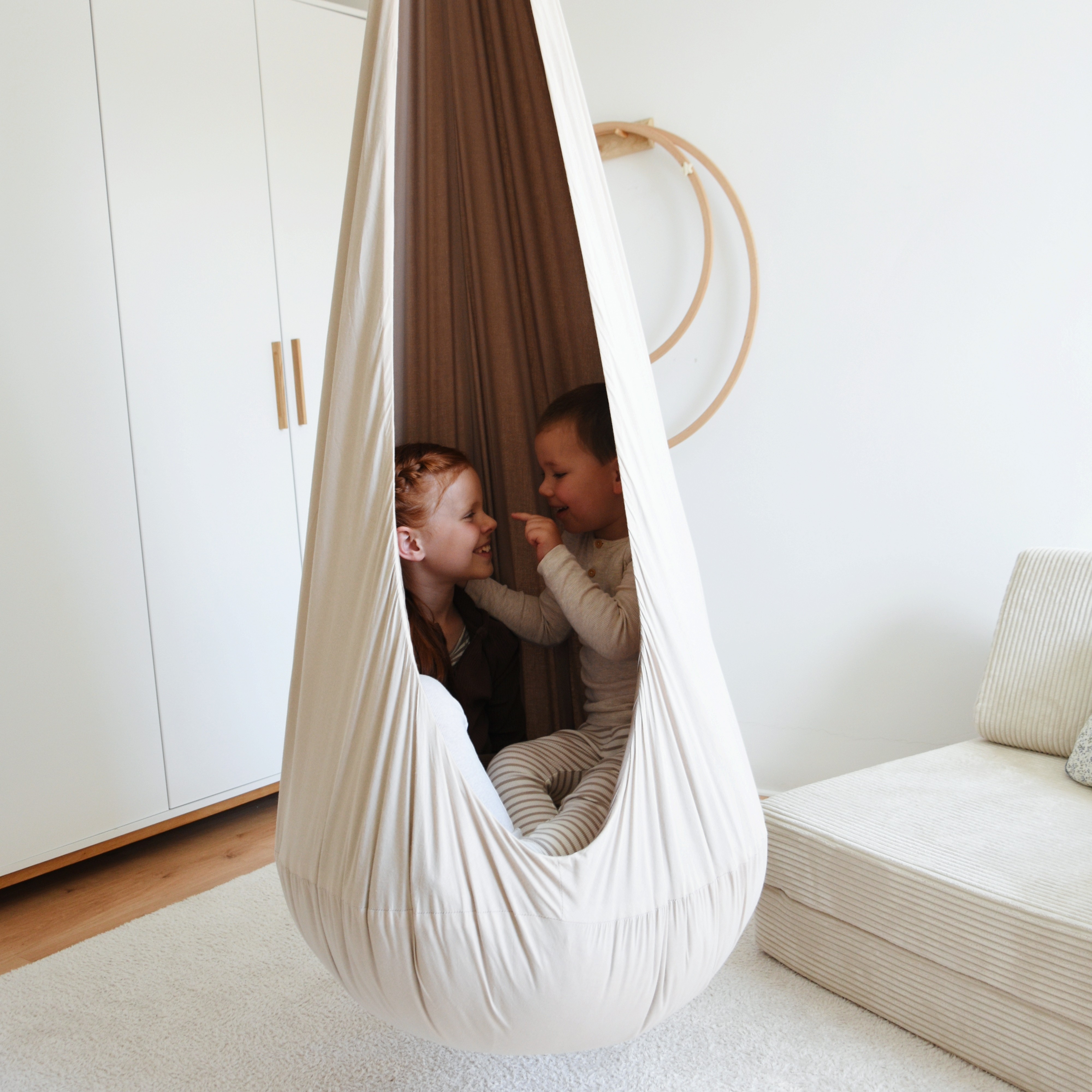 Die Design4Kids Cocoons sind ein ruhiger Rückzugsort für Kinder für Kinde zwischen 3 und 14 Jahren – weich, geborgen und zeitlos im Design. Gefertigt aus 100 % Baumwolle bieten sie ein angenehmes Hautgefühl und laden zum Entspannen, Lesen und Träumen ein.