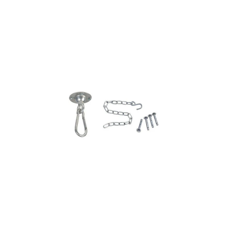 Set beinhaltet: Deckenhalterung, 4 Schrauben, Kette, Karabiner