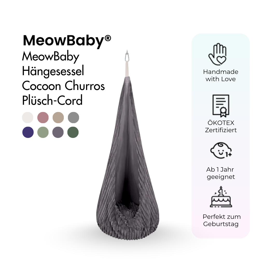 Schafft Euch eine magische Ruhe- und Spielzone im Kinderzimmer! Der MeowBaby® Hängesitz Kokon vereint Komfort, Stil und Sicherheit – perfekt zum Schaukeln, Träumen und Kuscheln.