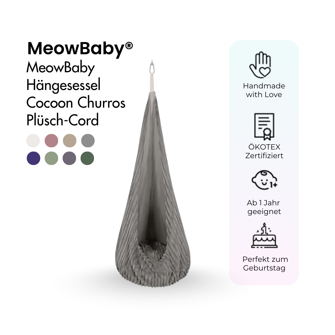 Schafft Euch eine magische Ruhe- und Spielzone im Kinderzimmer! Der MeowBaby® Hängesitz Kokon vereint Komfort, Stil und Sicherheit – perfekt zum Schaukeln, Träumen und Kuscheln.