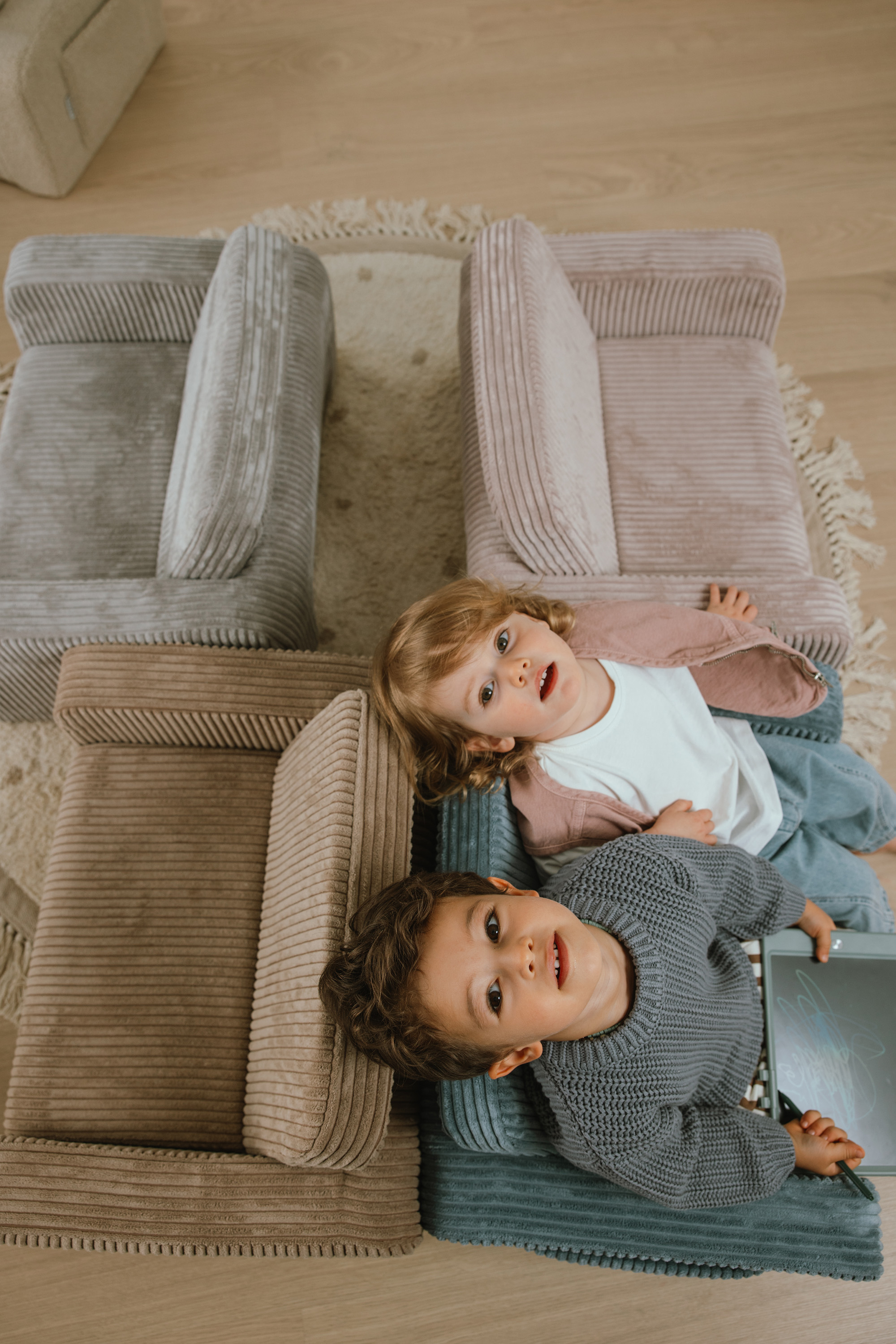 Das Shappy Play Sofa zeichnet sich durch eine clevere Konstruktion aus, bei der die Bodenkissen zusammengenäht sind, so dass zwei Elemente entstehen, die jeweils aus zwei Kissen bestehen. Dies sorgt nicht nur für optimalen Komfort beim Schlafen, sondern bietet auch Stabilität und Halt beim Spielen. Darüber hinaus erzeugt der für die Konstruktion des Sofas verwendete Stoff eine natürliche Reibung, die dazu beiträgt, die Elemente zusammenzuhalten und ein sicheres und nahtloses Spielerlebnis zu gewährleisten.