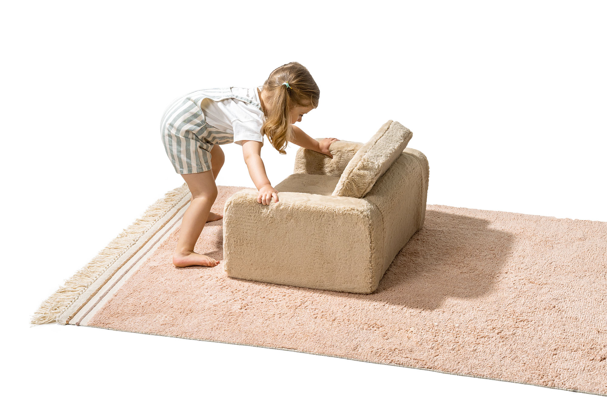 Das Shappy Play Sofa zeichnet sich durch eine clevere Konstruktion aus, bei der die Bodenkissen zusammengenäht sind, so dass zwei Elemente entstehen, die jeweils aus zwei Kissen bestehen. Dies sorgt nicht nur für optimalen Komfort beim Schlafen, sondern bietet auch Stabilität und Halt beim Spielen. Darüber hinaus erzeugt der für die Konstruktion des Sofas verwendete Stoff eine natürliche Reibung, die dazu beiträgt, die Elemente zusammenzuhalten und ein sicheres und nahtloses Spielerlebnis zu gewährleisten.