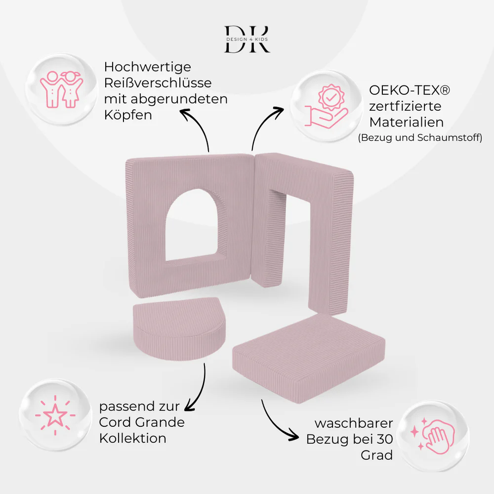Ob als Torbogen für kleine Burgen mit abnehmbaren Türen, als Arm- und Rückenlehnen-Duo, als Mini-Spielbereich/Bällebad-Erweiterung oder als fantasievolle Schutzschilde – die Elemente lassen sich jederzeit neu kombinieren und an die Abenteuer Deiner Kinder anpassen. Deiner Kreativität sind keine Grenzen gesetzt!