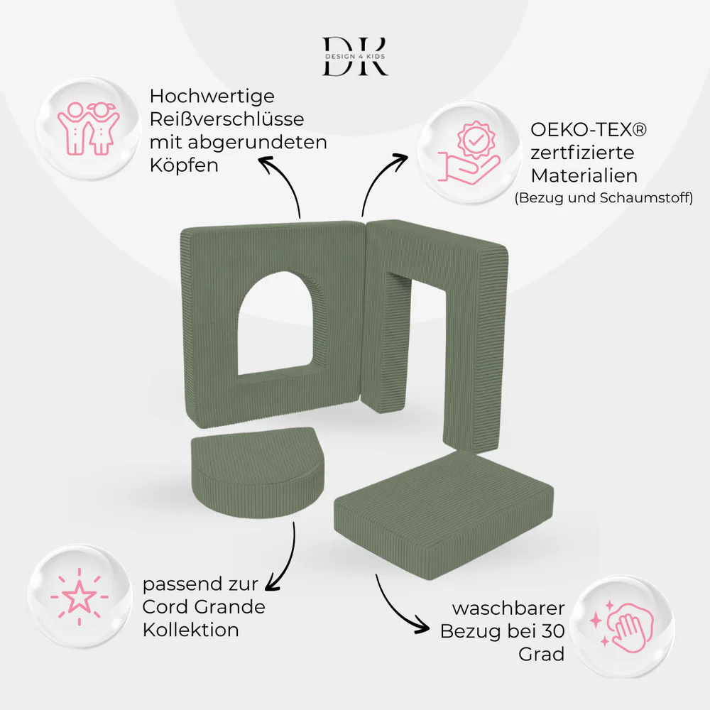 Ob als Torbogen für kleine Burgen mit abnehmbaren Türen, als Arm- und Rückenlehnen-Duo, als Mini-Spielbereich/Bällebad-Erweiterung oder als fantasievolle Schutzschilde – die Elemente lassen sich jederzeit neu kombinieren und an die Abenteuer Deiner Kinder anpassen. Deiner Kreativität sind keine Grenzen gesetzt!