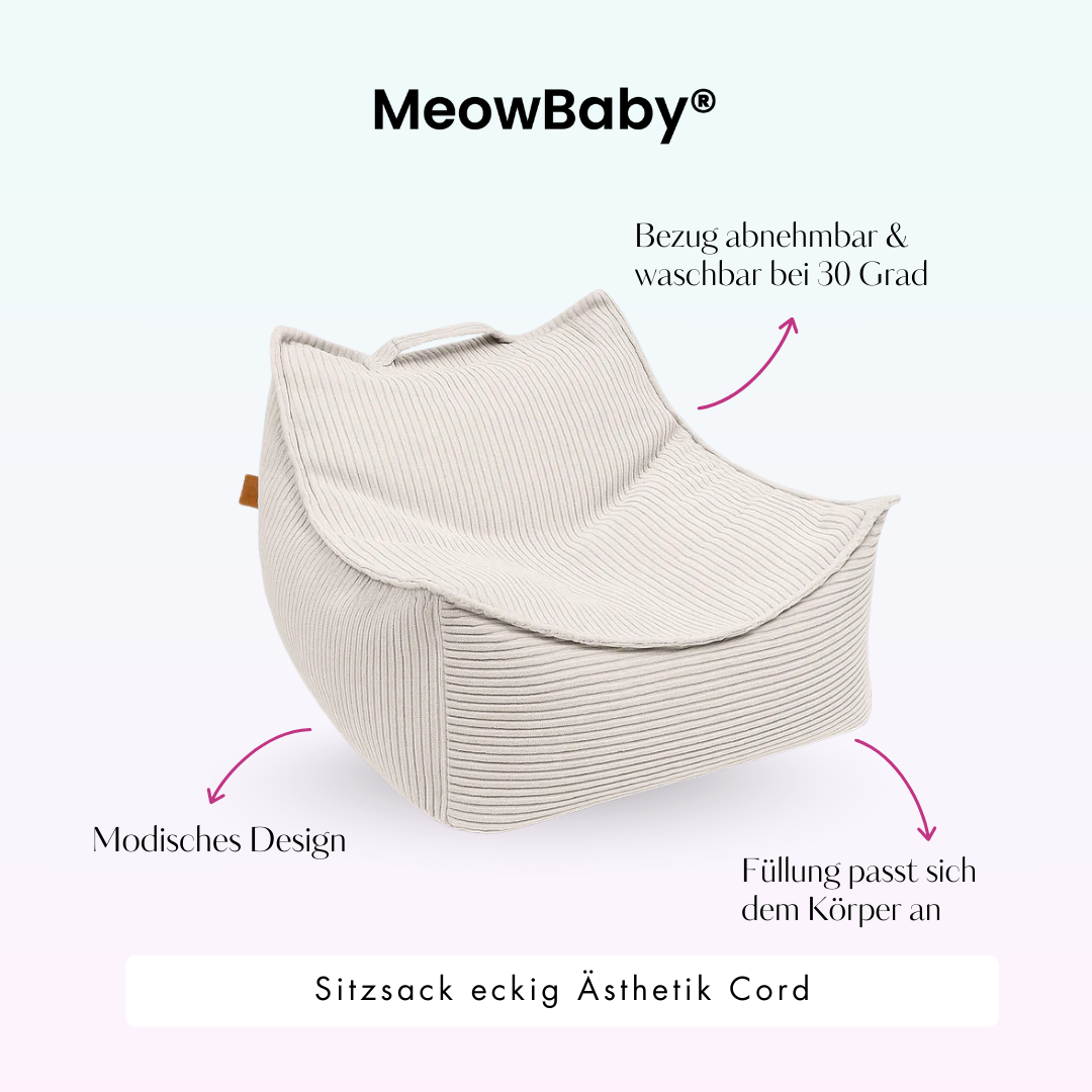 MeowBaby Kindersitzsack Ästhetik Cord eckig - ecru/beige